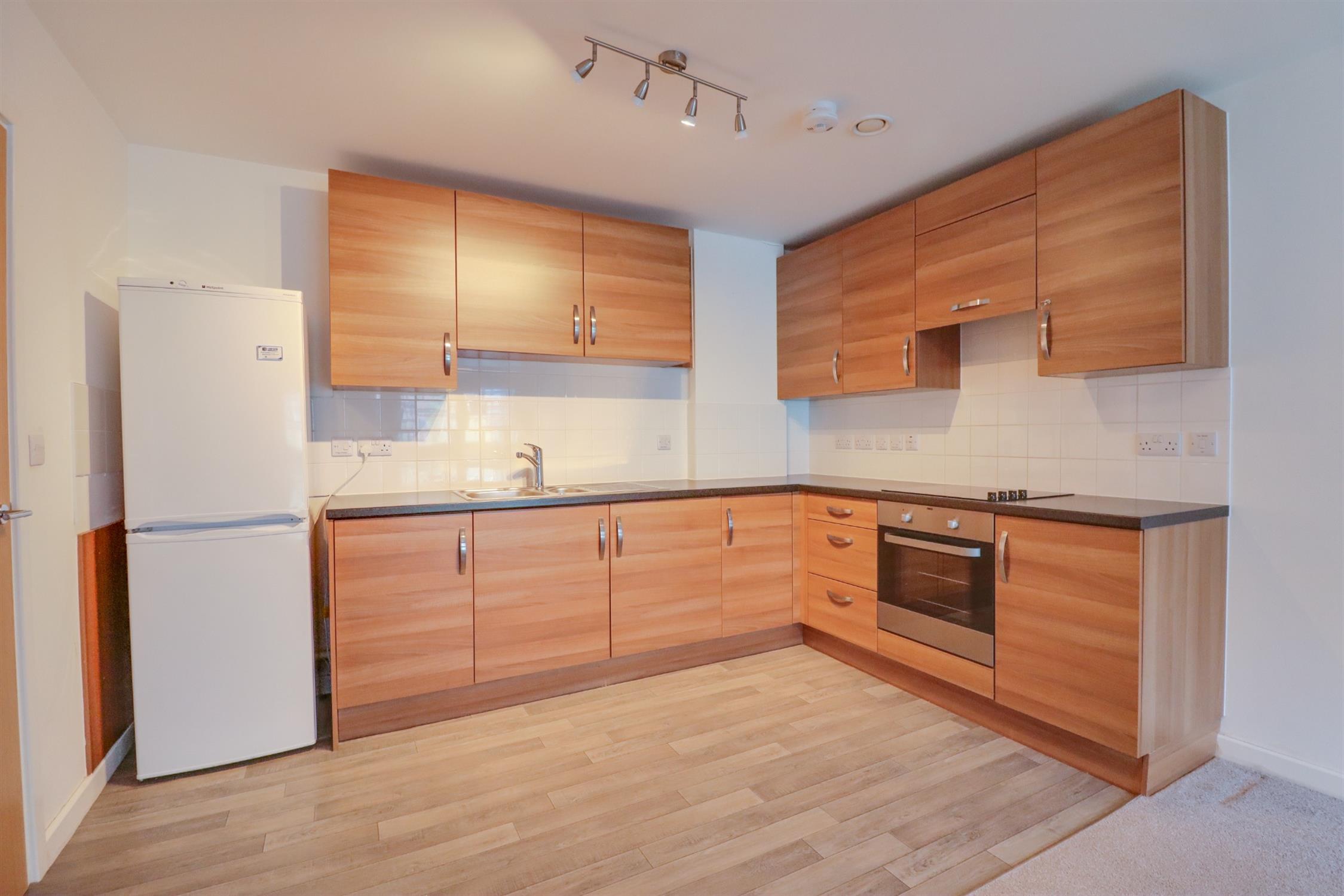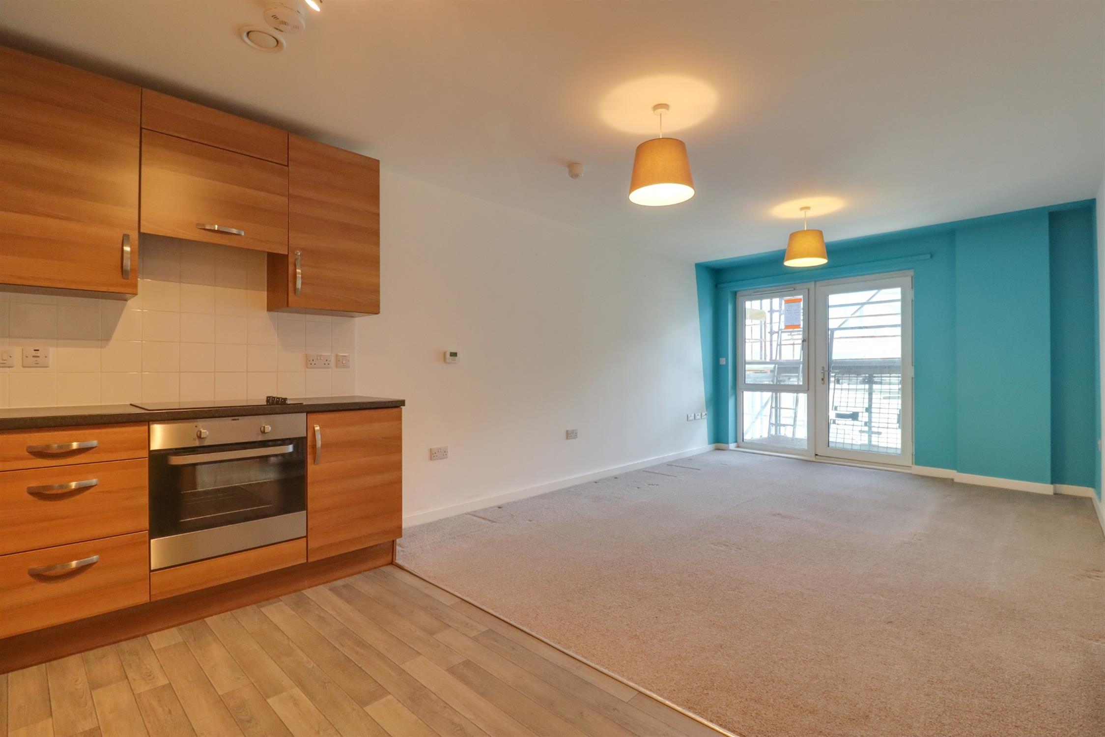 Smooth finish to ceiling, double glazed window and door to front aspect leading on to balcony, radiator Kitchen: Smooth finish to ceiling, range of matching wall, base and drawer units with work surface over, stainless steel sink and drainer inset, integrated oven and hob with extractor fan over, space for fridge/freezer, tiled splash backs.