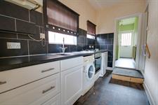 Smooth ceiling, two UPVC double glazed windows to side, window and door to rear, base and drawer units with work surface over, built-in oven with gas hob over, space for appliances, tiled splashbacks, door to: