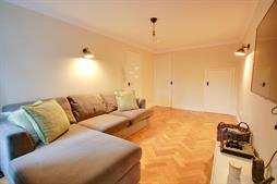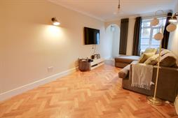 LIVING ROOM - Spacious reception with herringbone hardwood floor and doors leading through to; kitchen, bathroom and bedroom