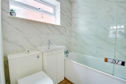 BATHROOM - Modern fitted three-piece suite with shower over bath.