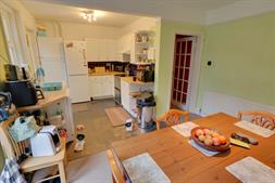 To the rear of the home the open-plan kitchen and dining room, perfectly designed for modern family life and entertaining guests. French doors open directly onto the rear garden, seamlessly blending indoor and outdoor living. A practical utility room sits just off the kitchen, offering additional storage.