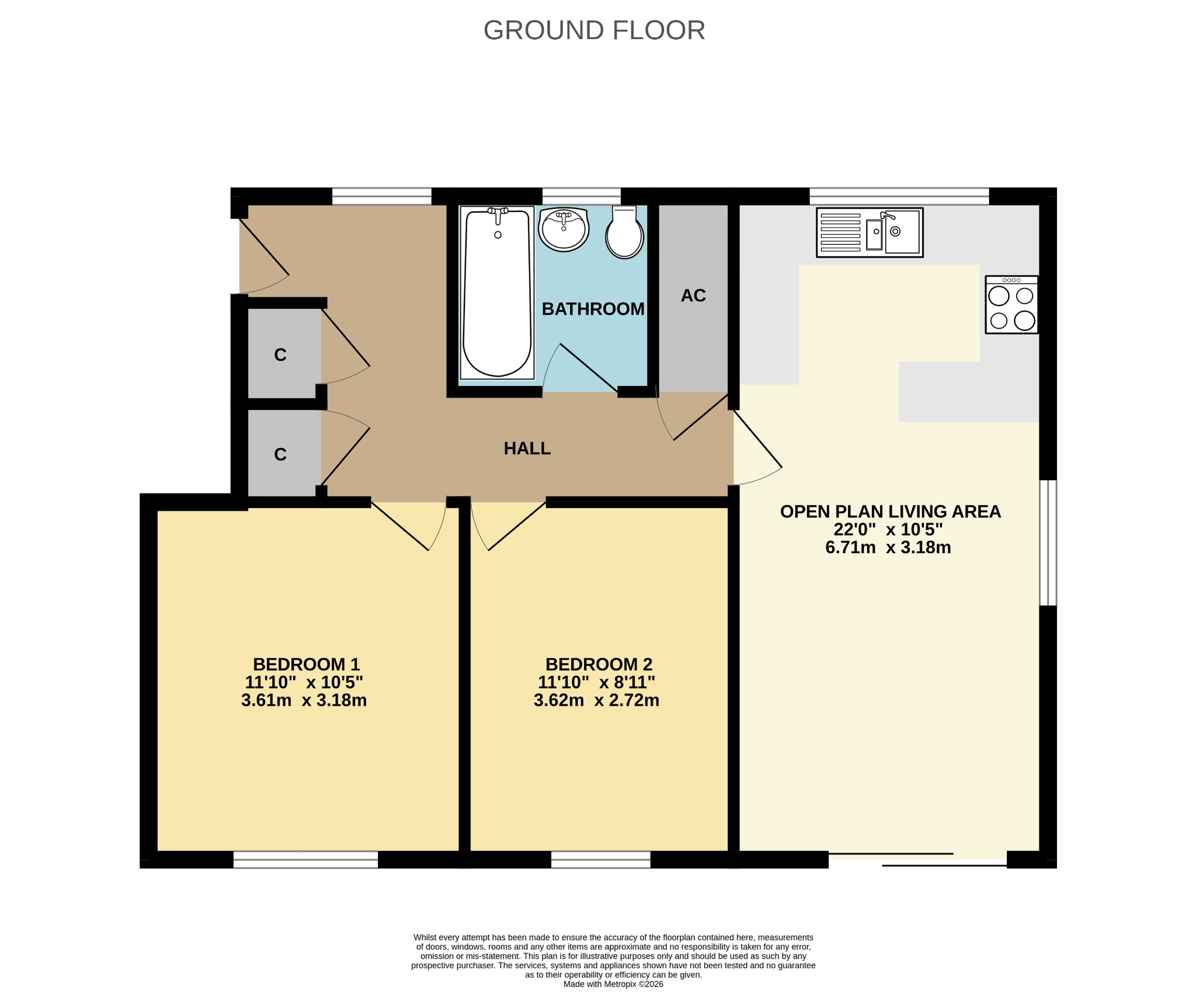8' 11" (2.72m) x 11' 10" (3.61m):