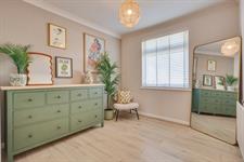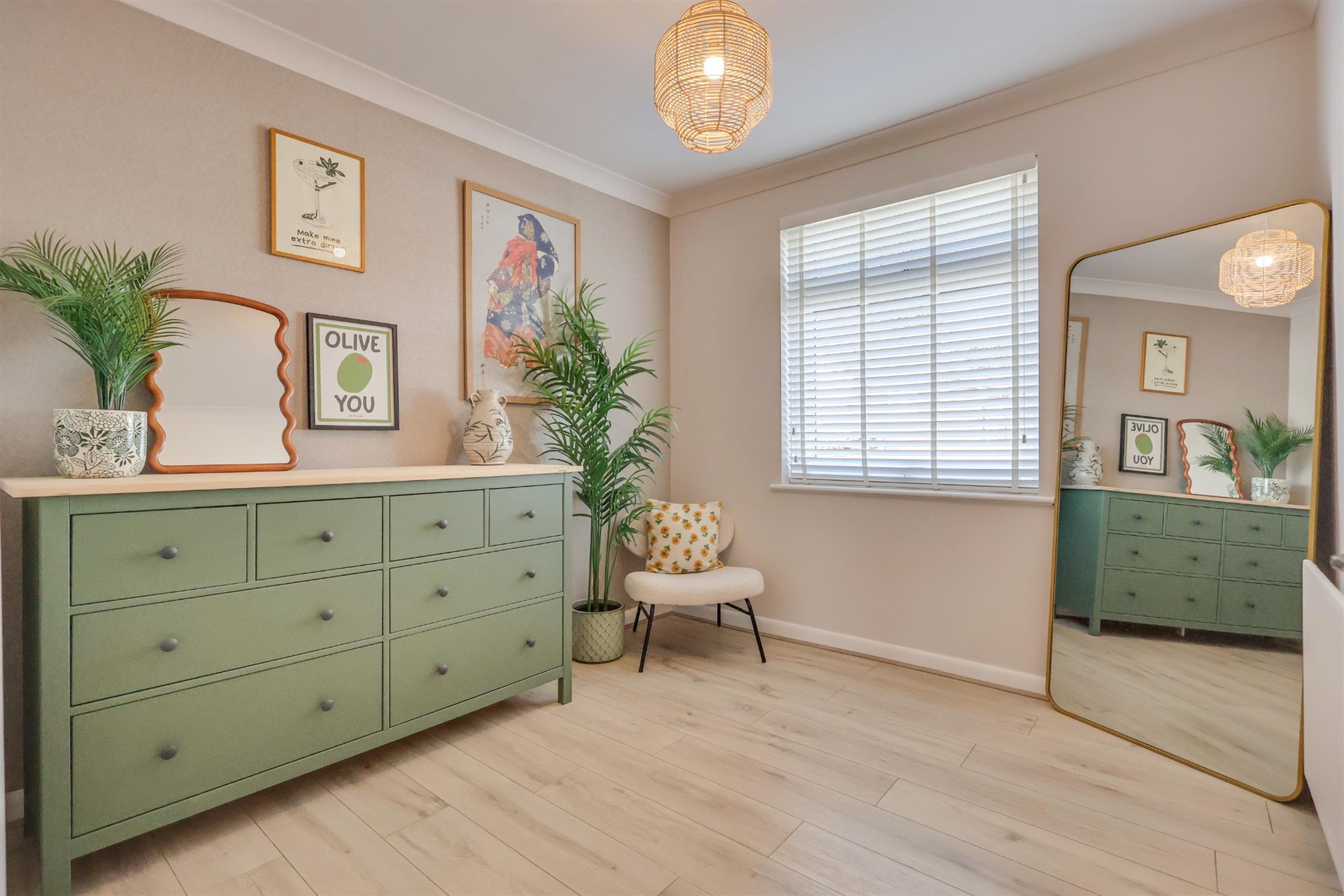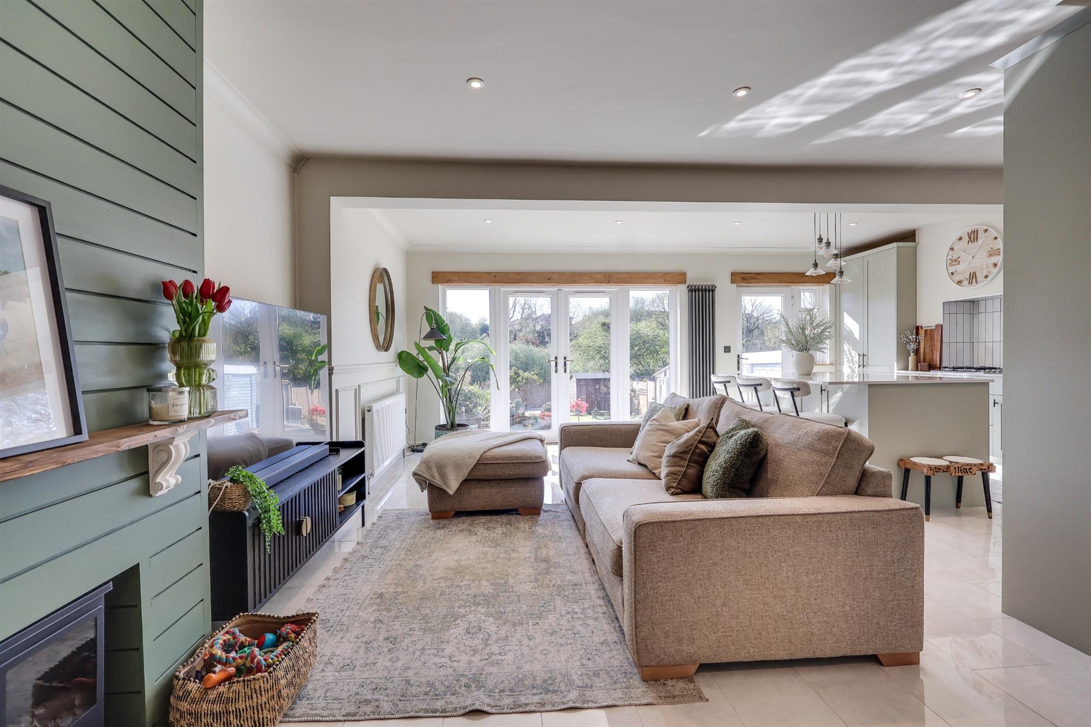 Welcome to Lime Avenue! A beautifully refurbished two double-bedroom semi-detached bungalow that perfectly combines modern elegance with practical living. Tucked away in a peaceful cul-de-sac, this charming home offers a wonderful sense of privacy alongside a range of standout features, including a spacious open-plan living area, a large driveway providing parking for multiple vehicles, and a thoughtfully landscaped garden. Upon entering, you are greeted by a welcoming entrance hall complete with a useful storage cupboard. The heart of the home is the impressive 24ft x 20ft open-plan living space, designed for both comfort and style. The kitchen is particularly striking, fitted with sage green shaker-style units, integrated appliances, quartz worktops and bespoke shelving. The living area is finished with tiled flooring and enhanced by French doors that open directly onto the garden, creating a seamless flow between indoor and outdoor living. The property offers two generously sized double bedrooms, with the principal bedroom featuring a charming bay window and built-in wardrobes. The contemporary bathroom is finished to a high standard, complete with a mains-fed shower, vanity wash basin and elegant gold accents.