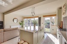 Smooth ceiling, double glazed window to side, double glazed French doors to rear, double glazed door to rear, a range of wall, base and drawer units with work surface over, ceramic sink and drainer inset, integrated washing machine and dishwasher, built-in oven and gas hob, space for fridge/freezer, two radiators.