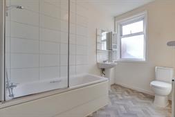 BathroomSmooth finish to ceiling, double glazed window to rear elevation, panel enclosed bath with mains fed shower over, low level WC, wash hand basin, tiling to principle areas, radiator.