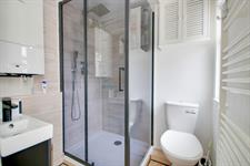 Smooth ceiling, double glazed door and double glazed obscured window to side, shower cubicle with mains fed shower over and additional rainfall shower head, WC, wash hand basin and wall-mounted boiler, space for washing machine and tumble dryer, ladder towel rail, under floor heating.