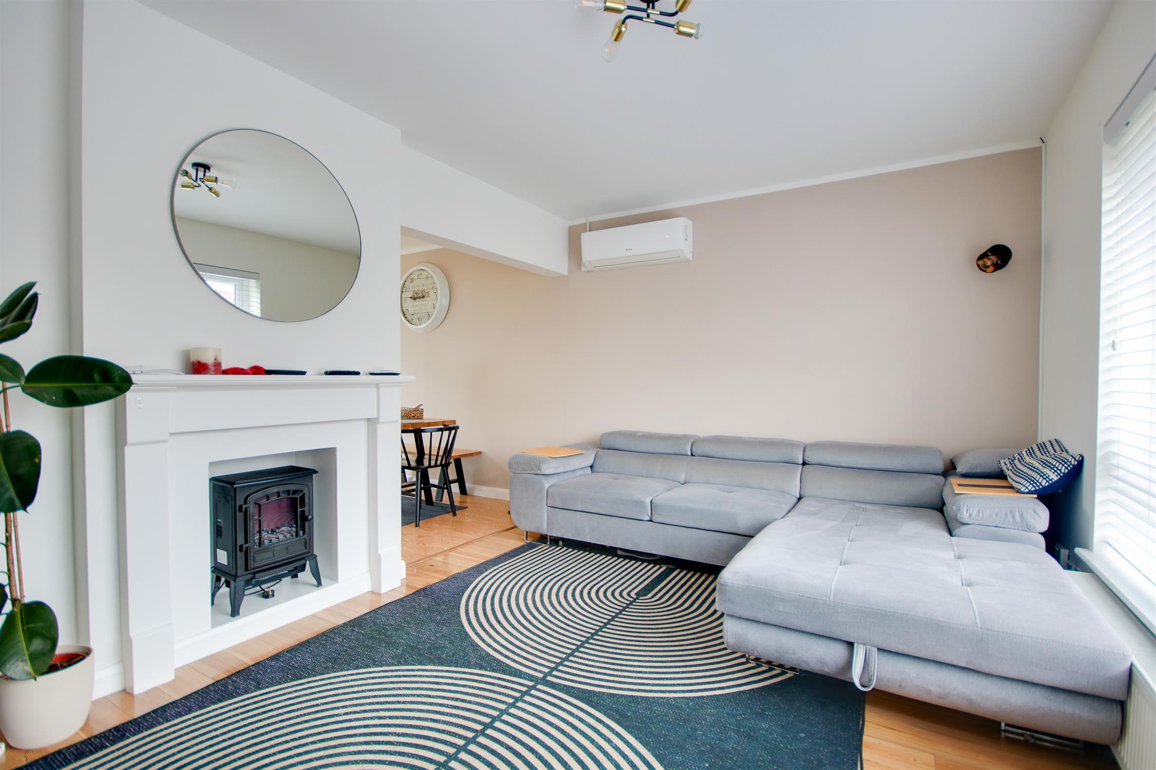 Smooth ceiling, double glazed obscured window to rear, panel enclosed bath with shower attachment, WC, wash hand basin, underfloor heating, radiator.