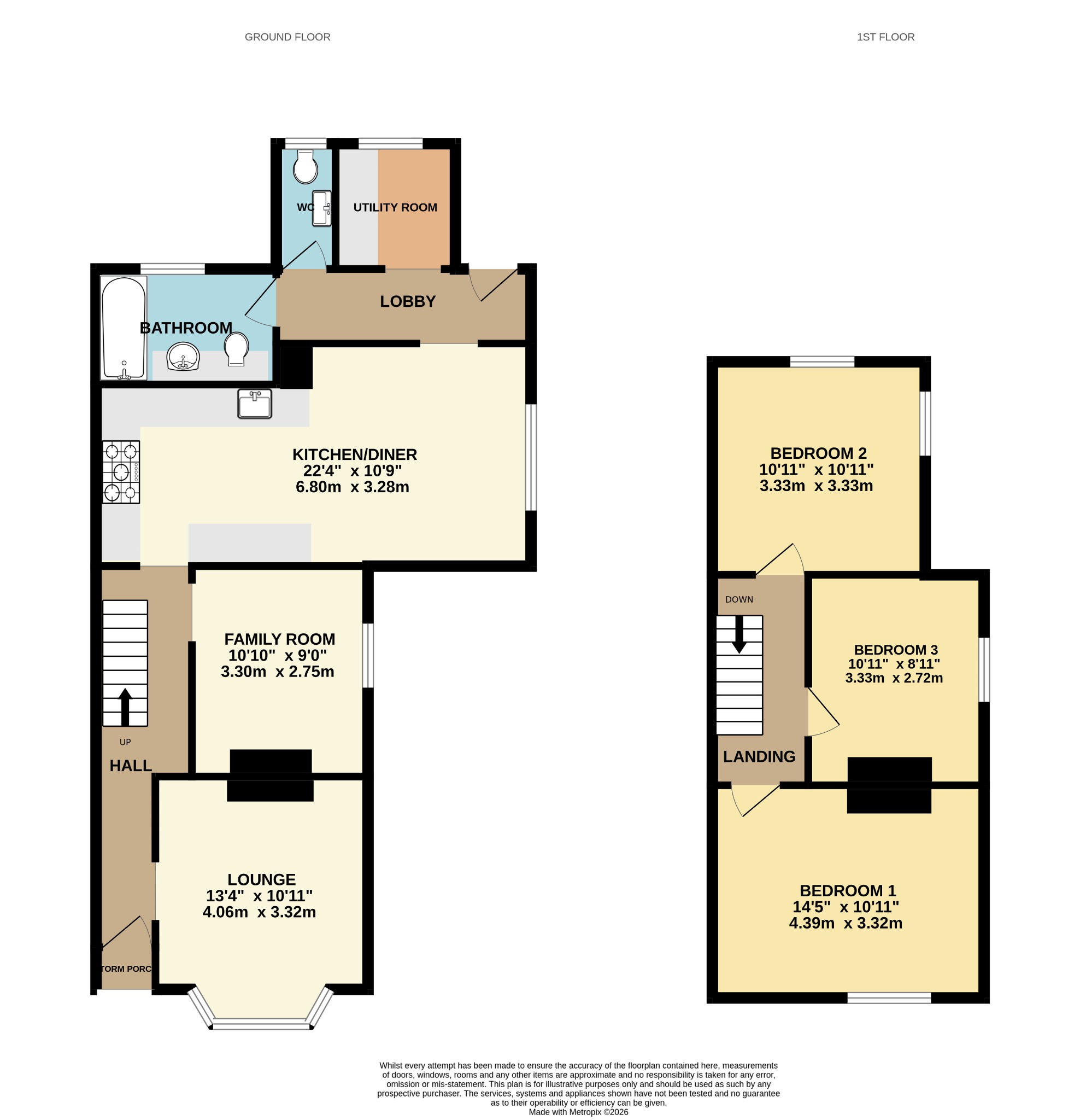 22' 4" (6.81m) x 10' 9" (3.28m) max: