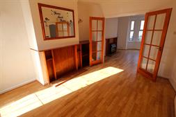 Double radiator, fireplace, double glazed bay window to front elevation, double doors to:
