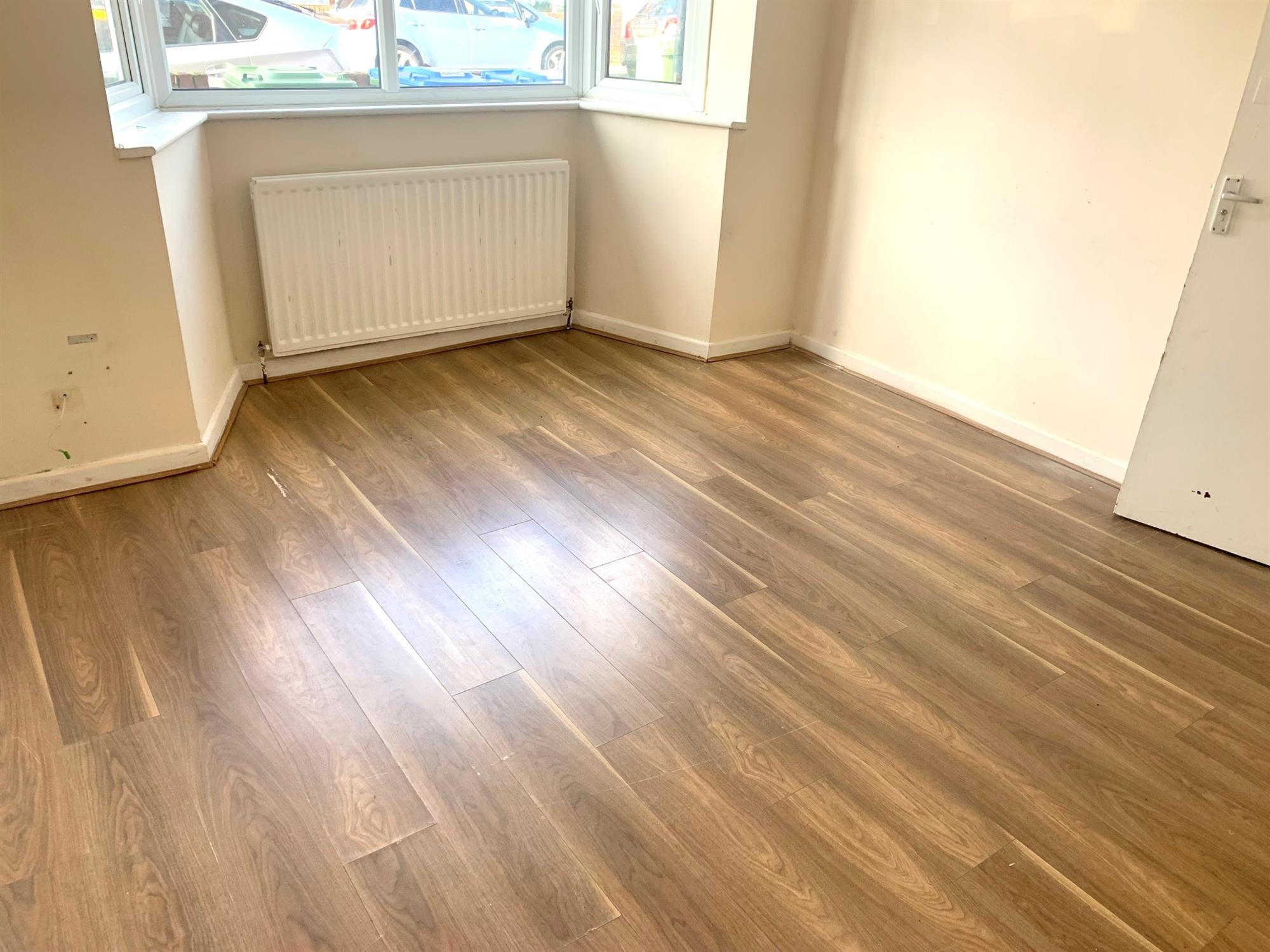 Good-sized room with laminate flooring and bay window to front.