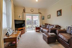 Textured finish to coved ceiling, picture rails, double glazed window to front elevation with original shutters, double glazed French doors to rear elevation, radiator.