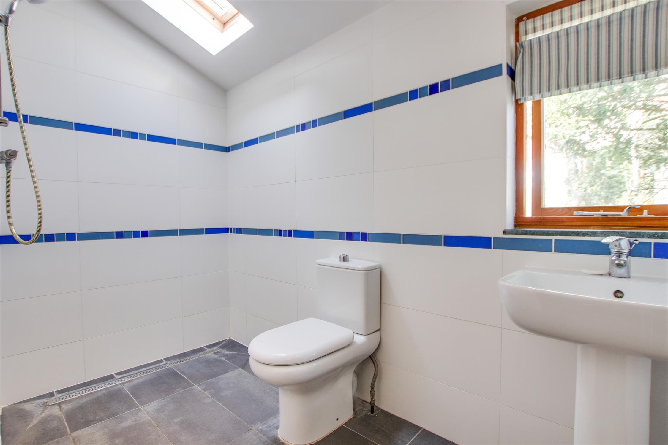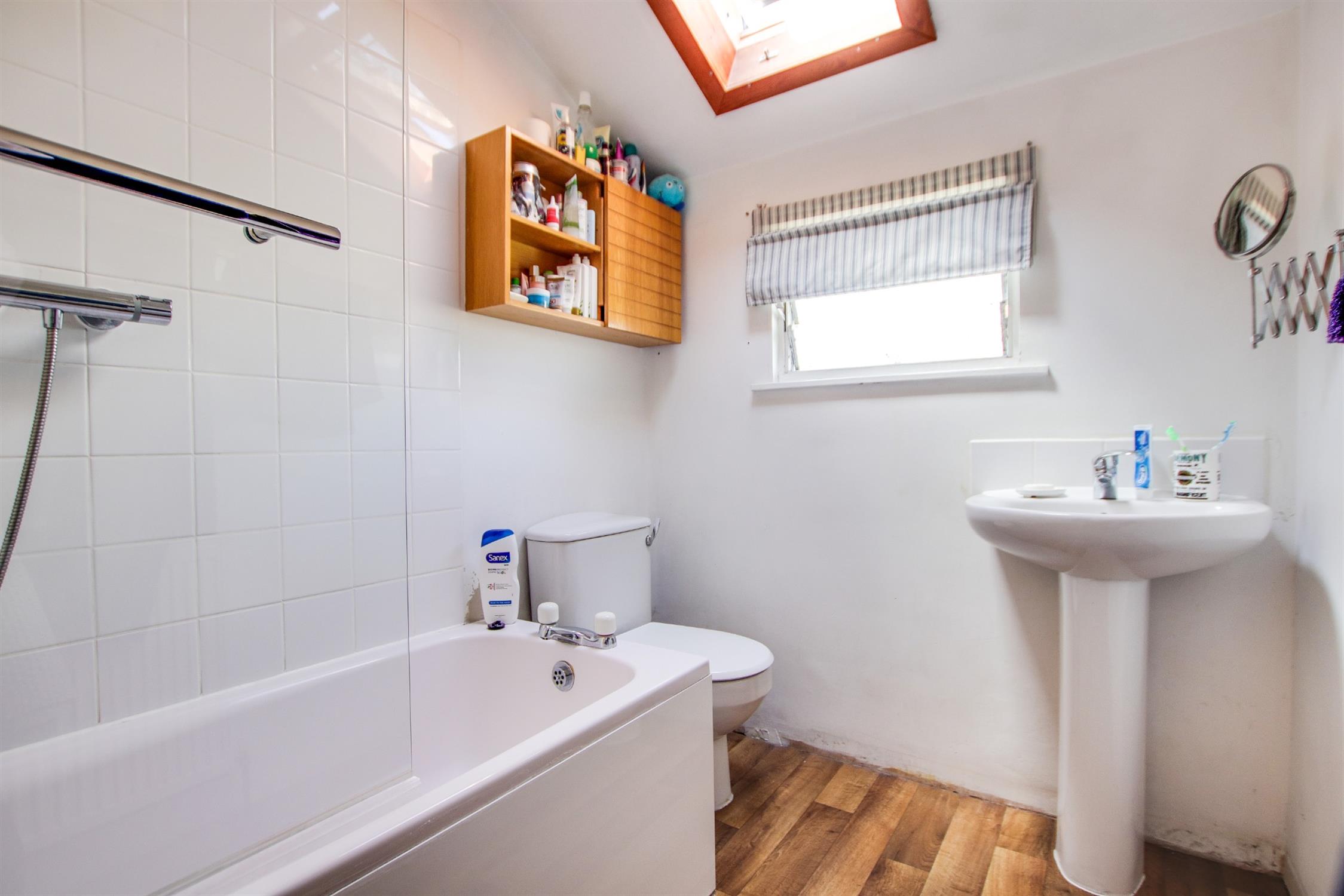 Smooth finish to ceiling, skylight window, double glazed window to rear aspect, shower attachment, low level WC and hand wash basin, fully tiled from floor to ceiling, radiator.