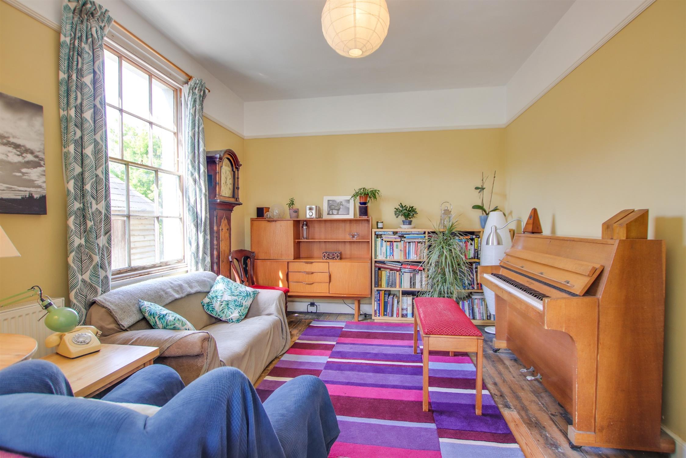 Smooth finish to ceiling, original picture rails, original sash window to side aspect, solid wood flooring, radiator.