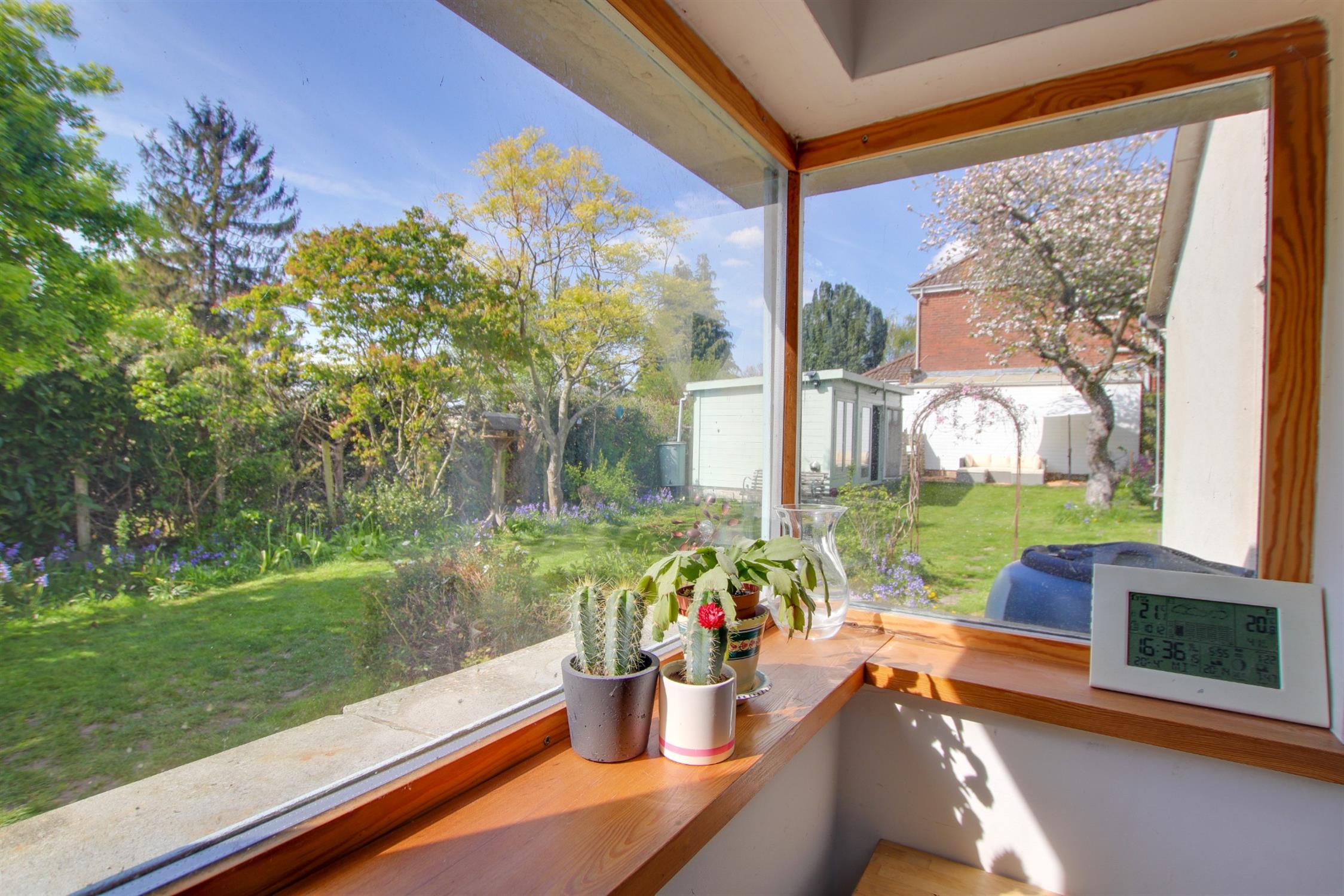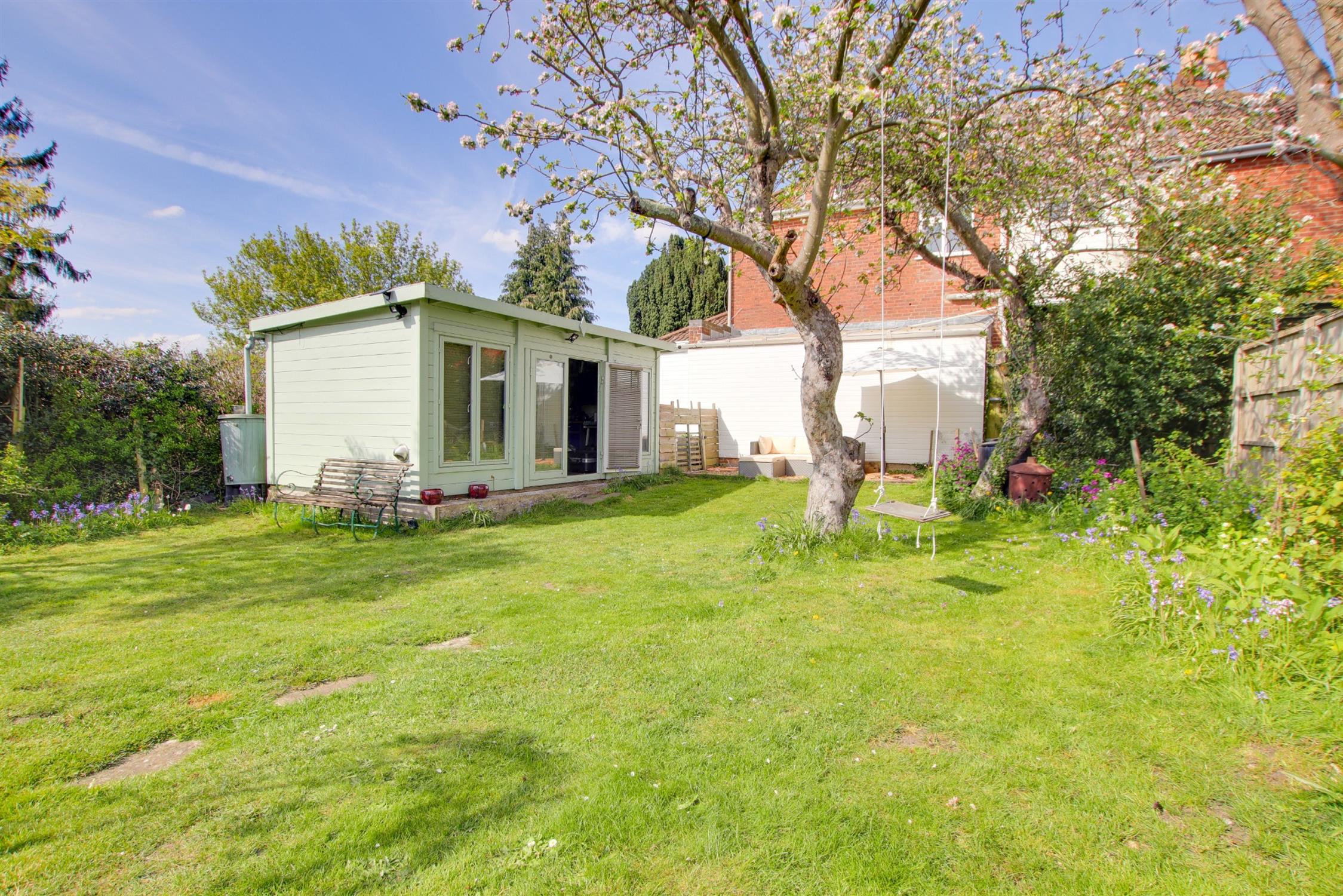 Outside Sitting on a generous mature plot, the property features a sweeping shingled driveway to the front which enclosed by a low level brick wall and a selection of well-established, evergreen trees and high level shrubs which create a sense of privacy and seclusion. There is a much larger than average 26'8 foot garage with a bespoke raked window and a barn style door, an insulated and power and light connected home office (5m x 3m) with inset spotlights and heating and a spectacular rear garden which is predominately laid to lawn with a wrap around seating area and a beautiful selection of flowering shrubs and apple trees.