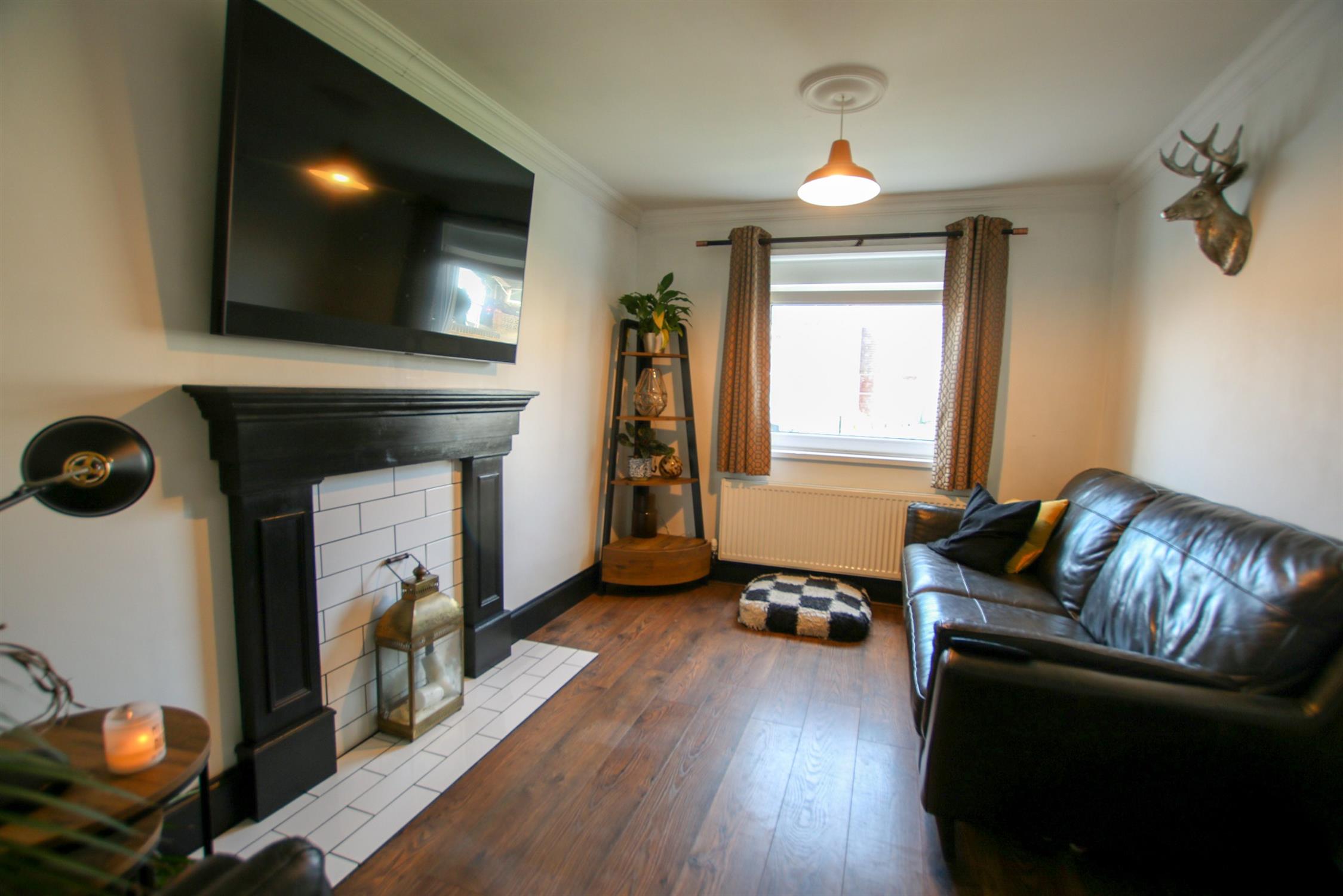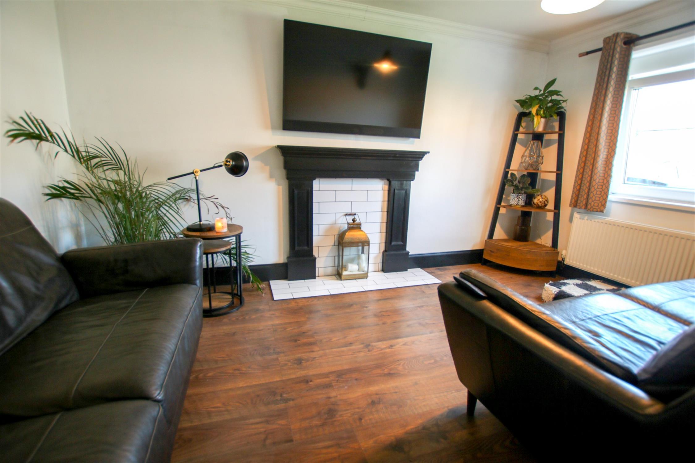 Radiator, feature fireplace, double glazed window to front elevation.