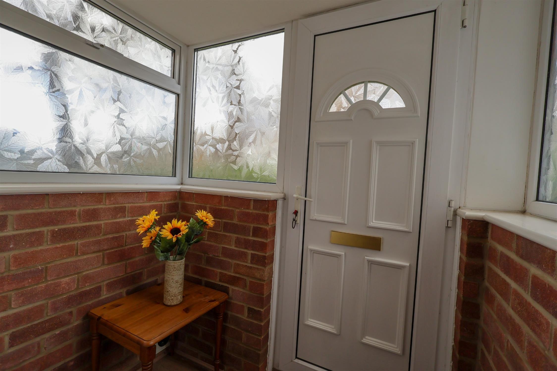 Brick built porch, double glazed windows to front and side elevations, frosted windows, textured finish to ceiling.