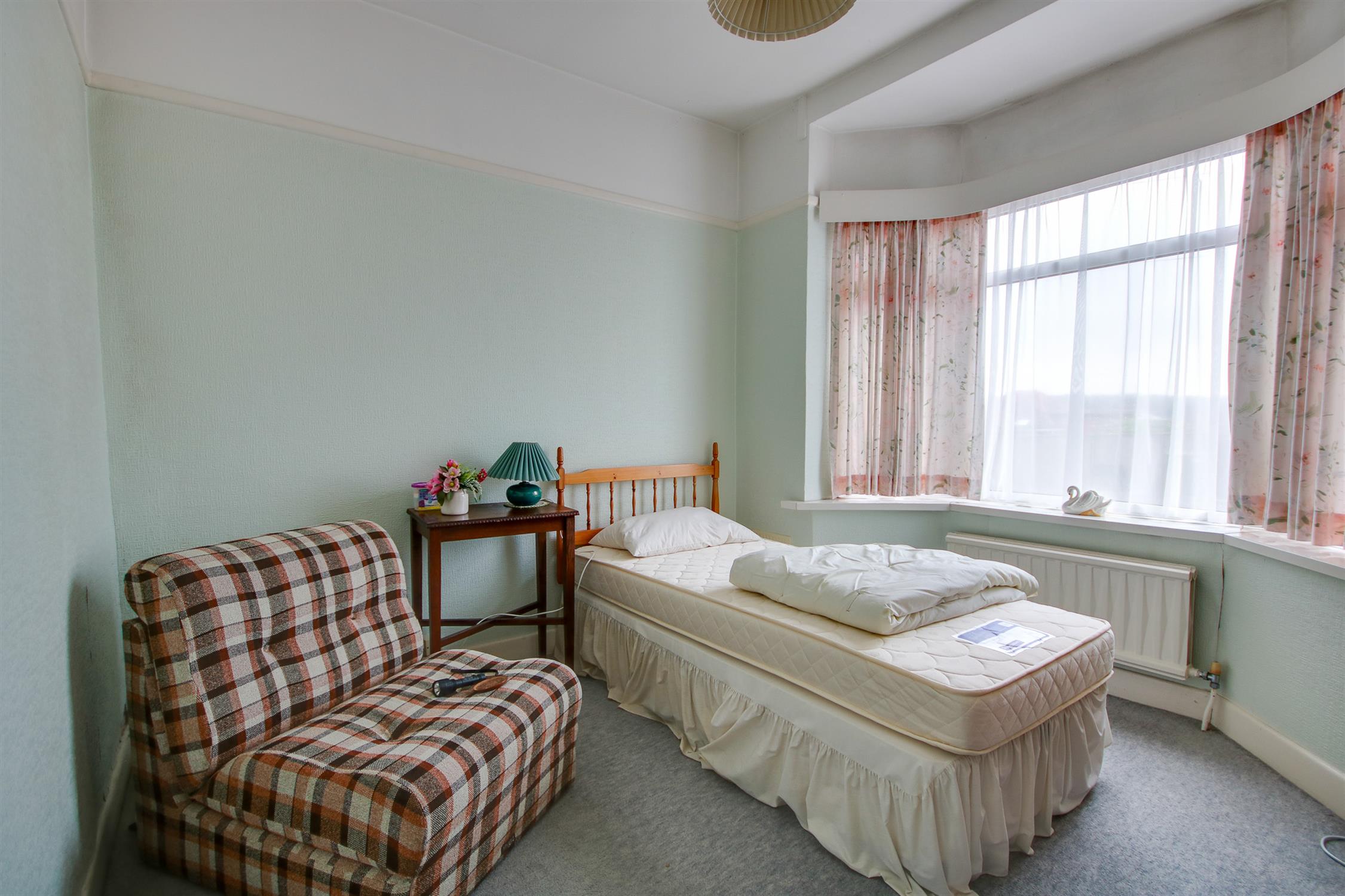 Smooth ceiling, UPVC bay window to front, radiator.