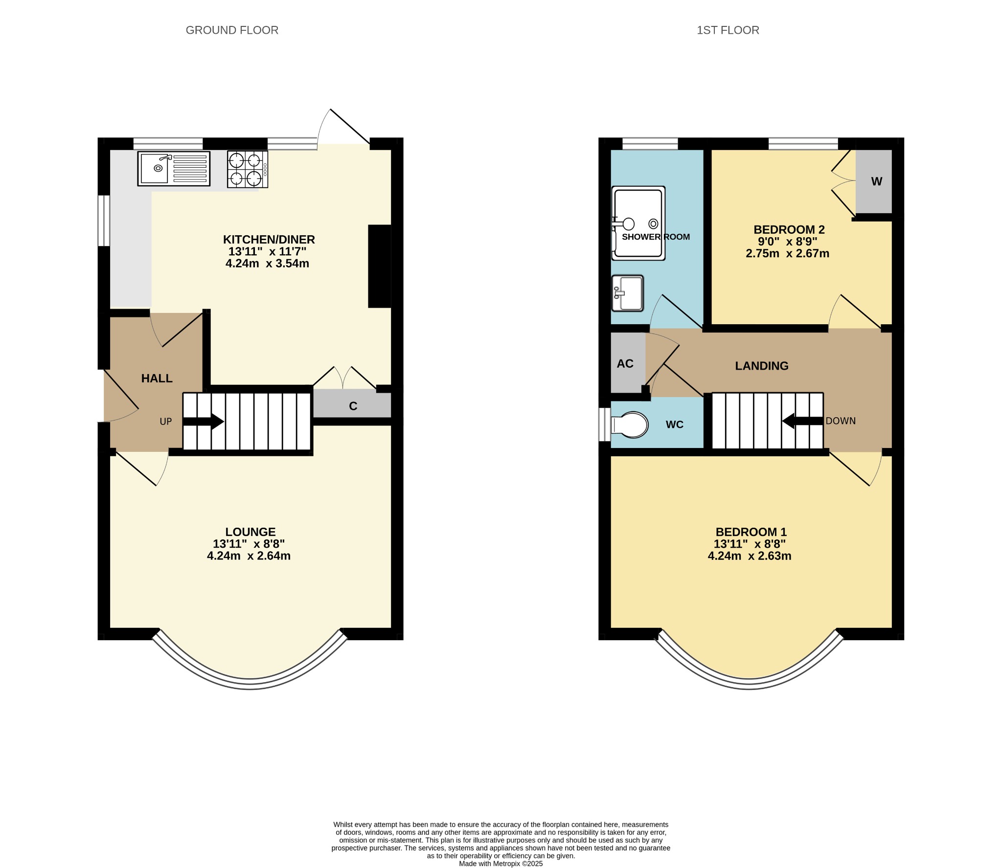 13' 11" (4.24m) x 8' 8" (2.64m):