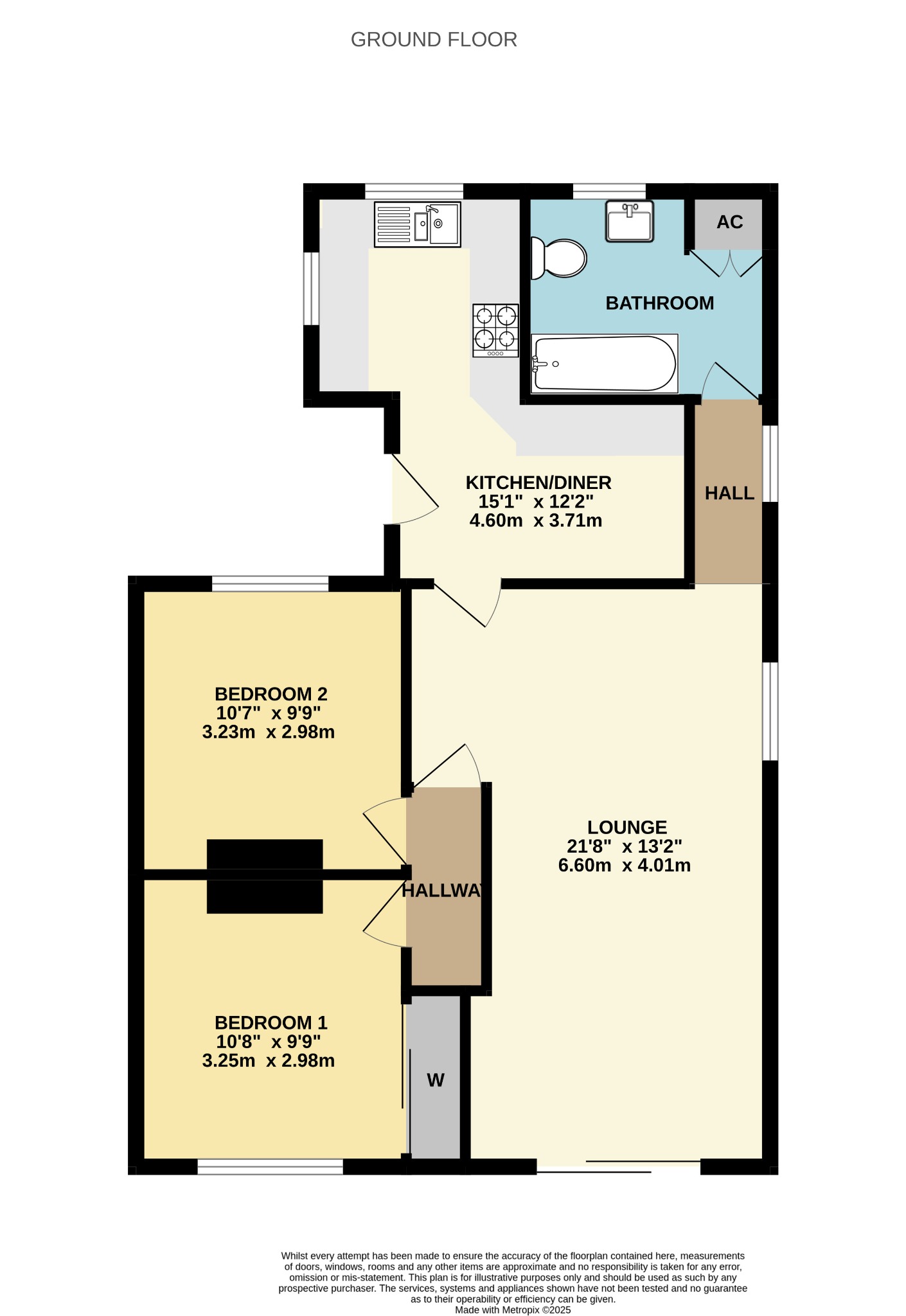 10' 8" (3.25m) x 9' 9" (2.97m):