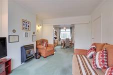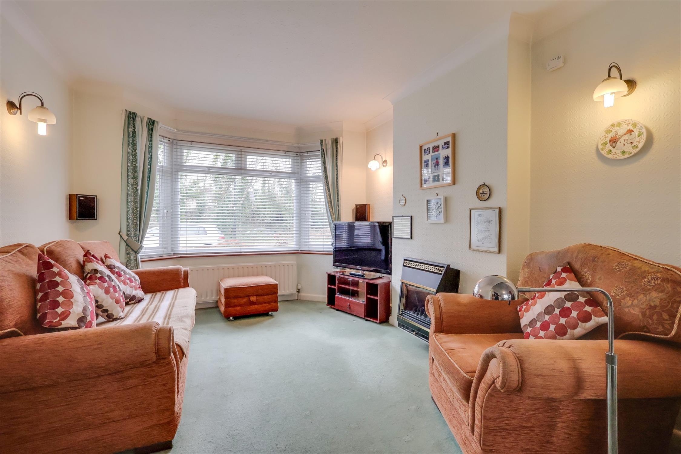 Textured finish to coved ceiling, double glazed bay window to front elevation, feature gas fireplace, radiator, opening to: