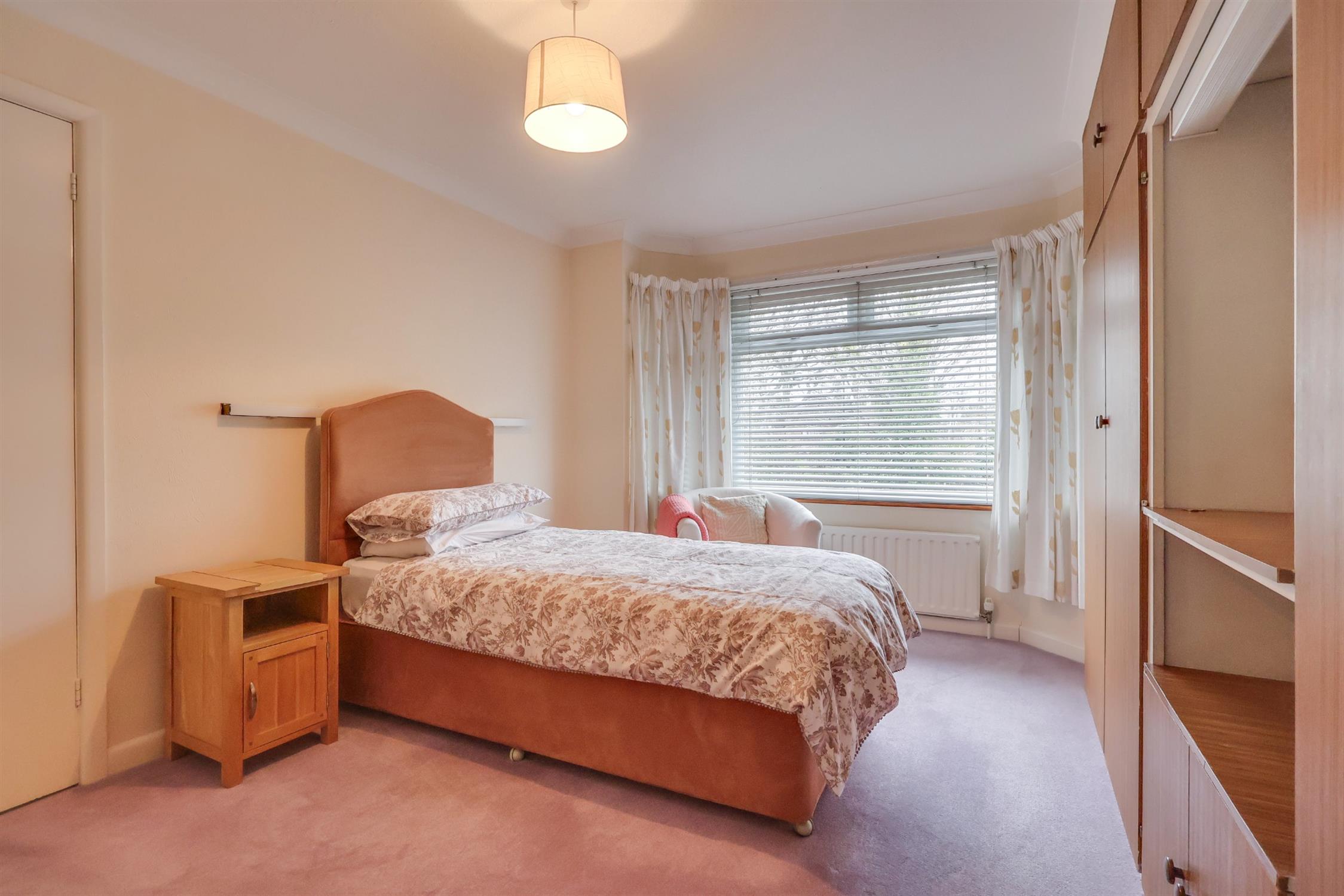 Textured finish to coved ceiling, double glazed bay window to front elevation, built in wardrobes, radiator.