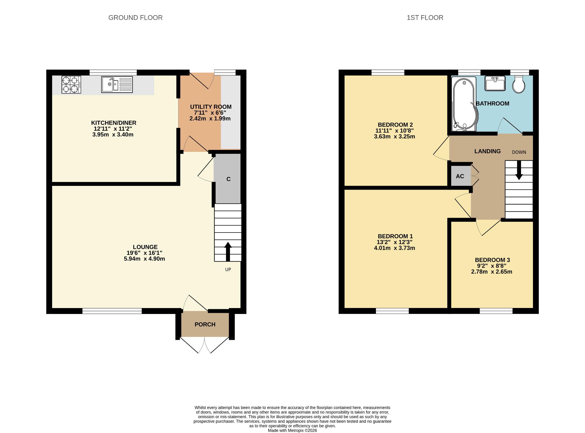 13' 2" (4.01m) x 12' 3" (3.73m):