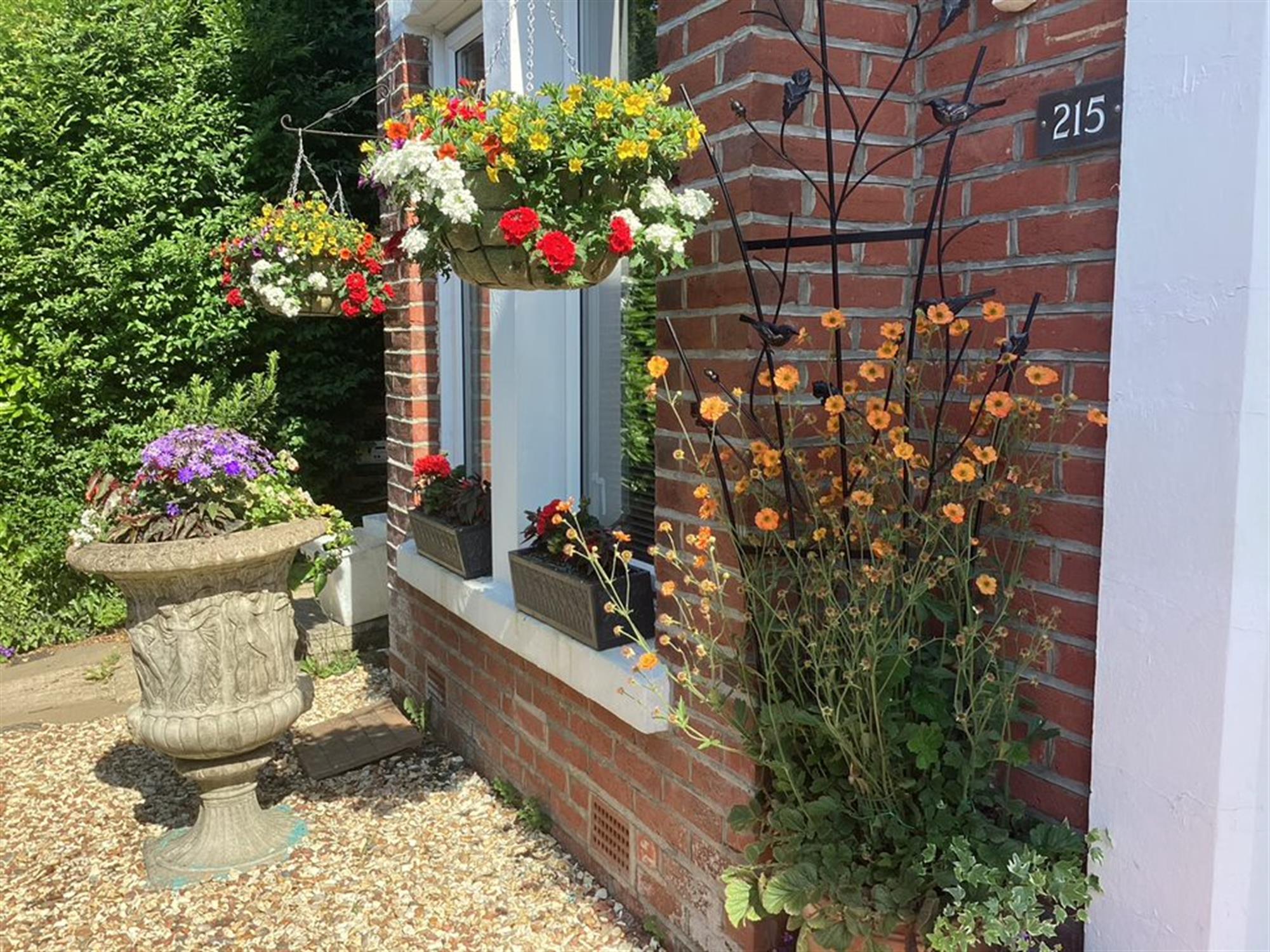 Mature shrub border creating high degree of privacy, secluded pathway to front door and side access.