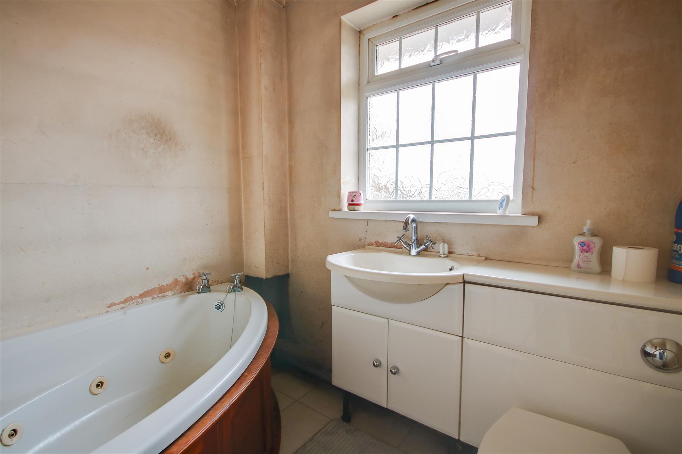 Textured and coved ceiling, double glazed obscured window to side, WC.