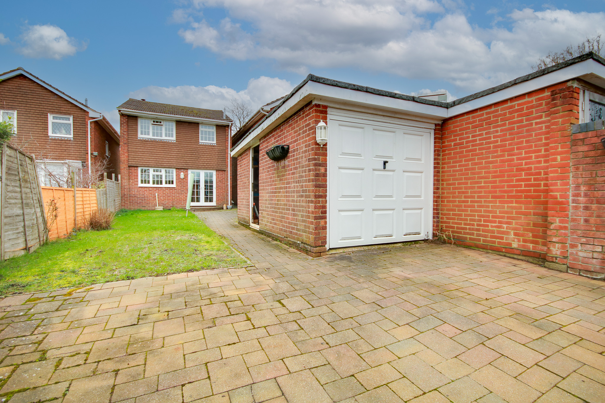 GardenFence enclosed garden, mainly laid to lawn with patio seating area, off road parking to the rear, gated side access.