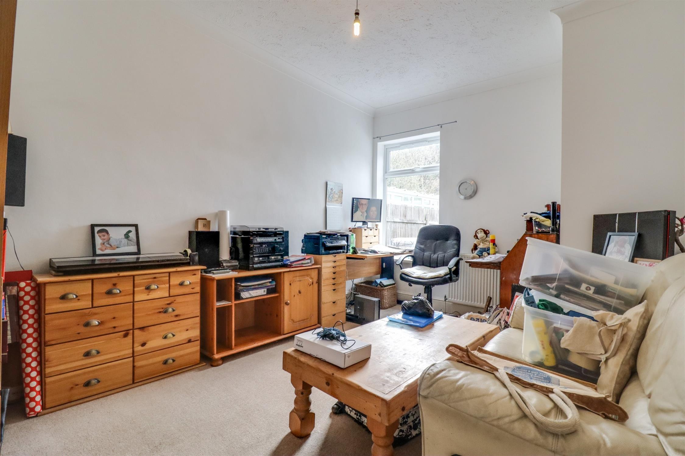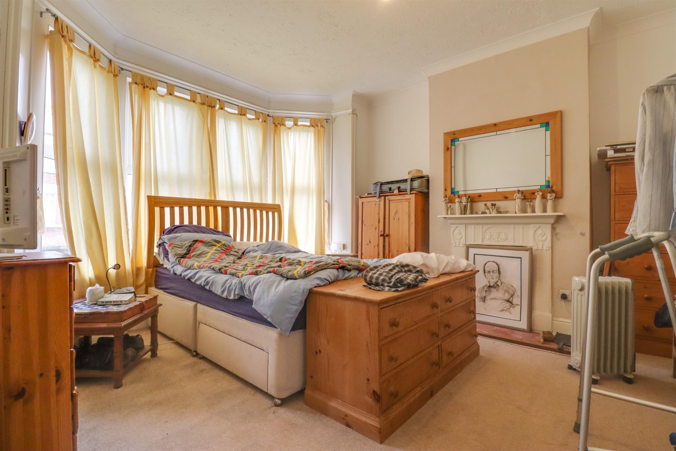 Textured finish to coved ceiling, double glazed bay window to front elevation, original fire place, radiator.