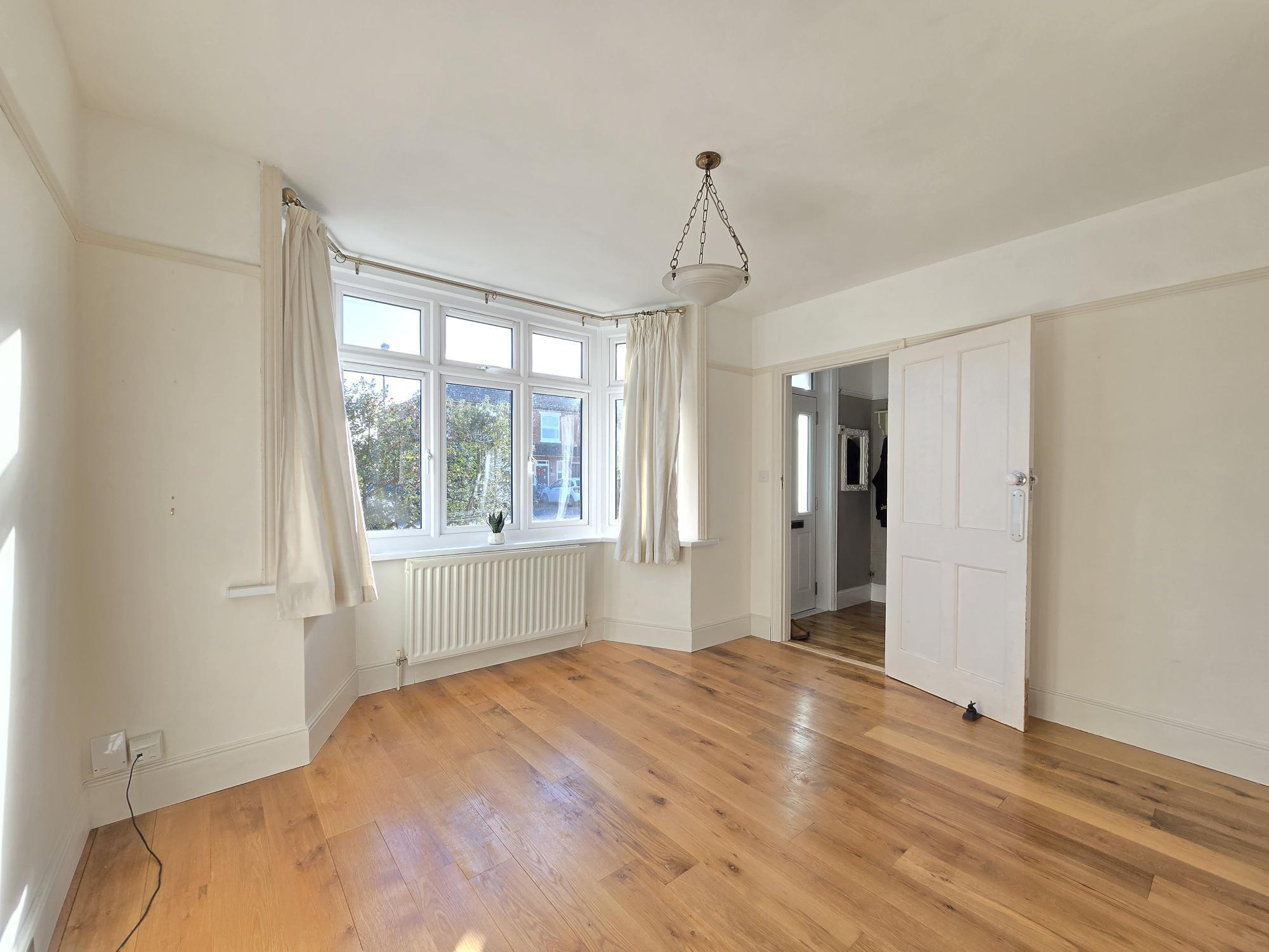 RECEPTION ROOM - Spacious with a large bay window allowing a lot of natural light. Laminate flooring.