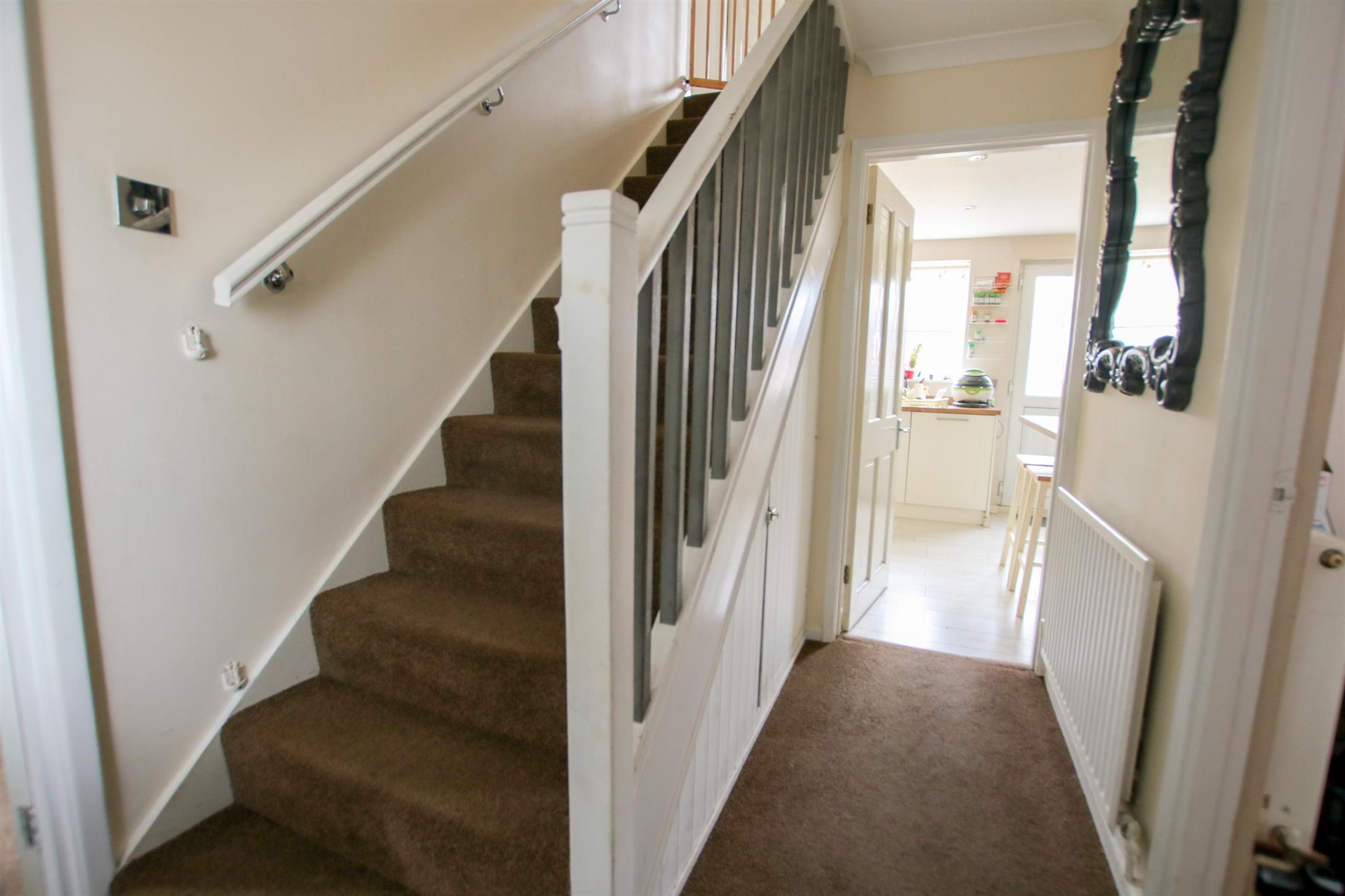 Storage cupboard, smooth finish to ceiling with coving, spotlights and loft access, doors to bedrooms 1,2,3,4 and bathroom.