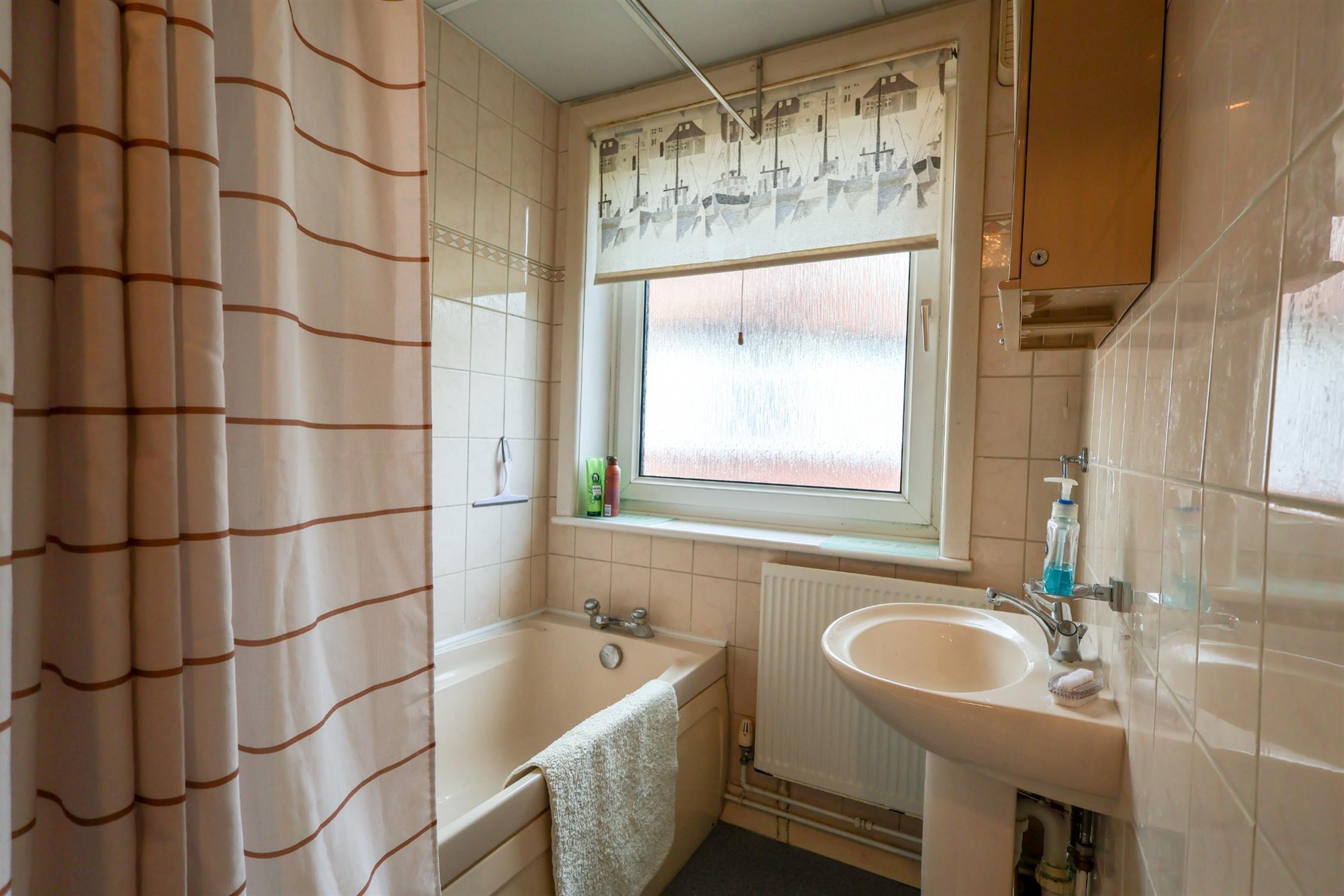 Bath suite with overhead shower, hand wash basin and bidet, tiled to principle areas, radiator, light panel ceiling, wall inserted ventilation, double glazed tilt and turn window to side elevation.