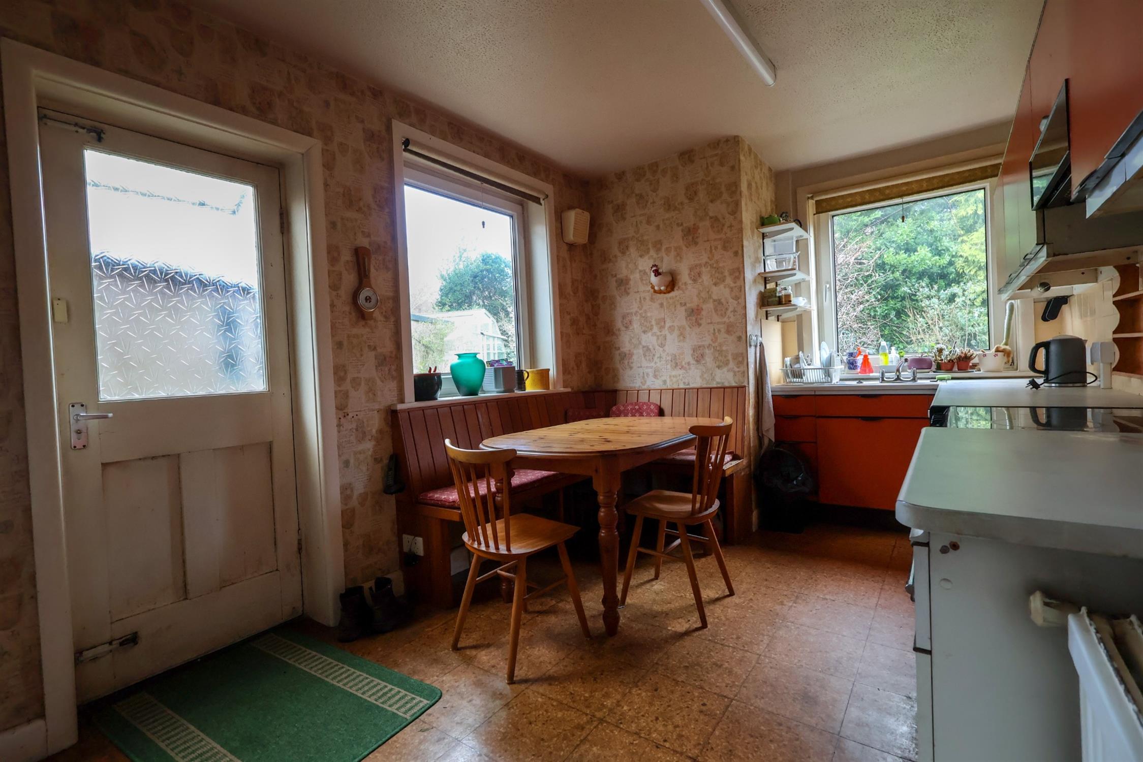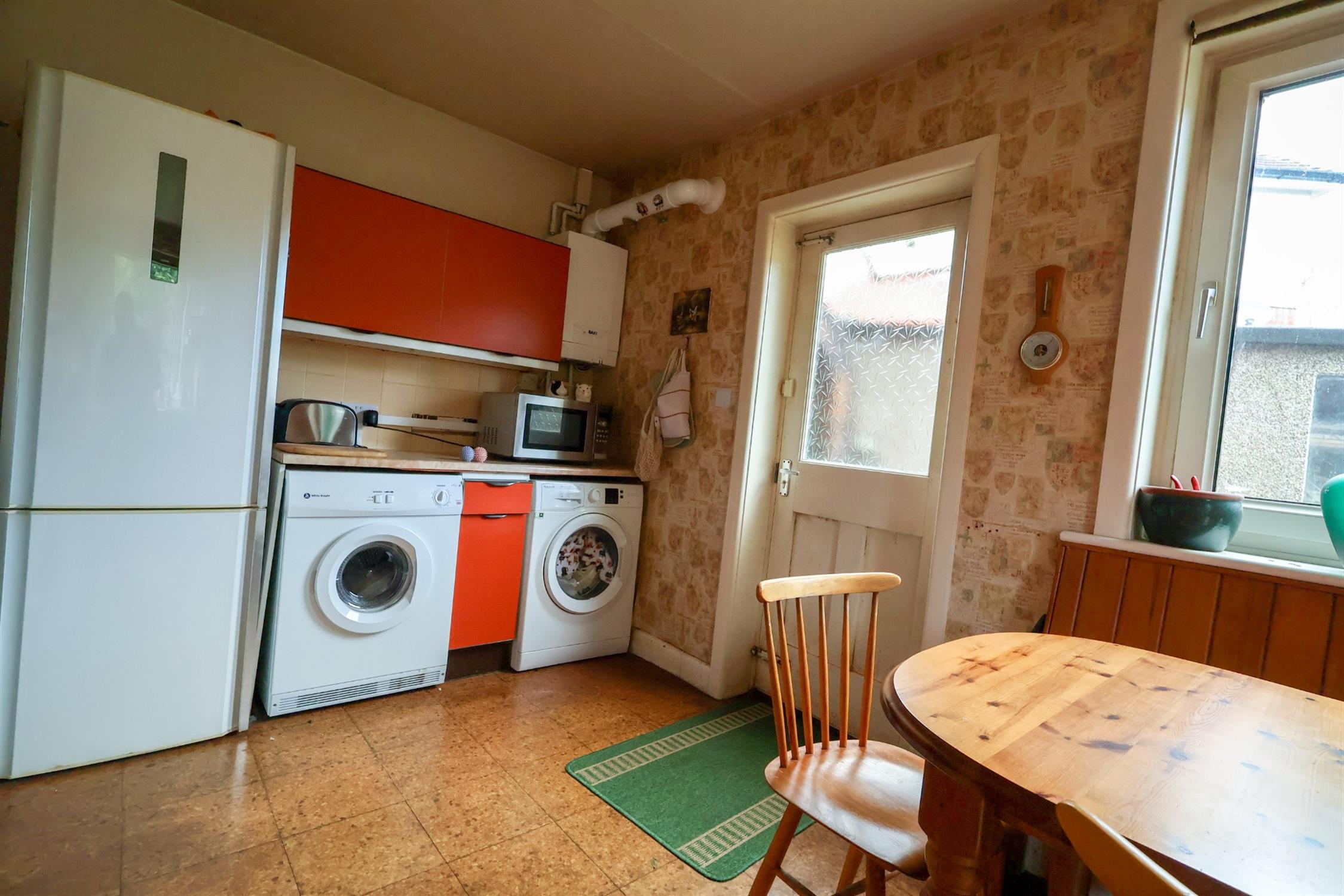 Base and eye level units, insert sink to countertop, tiled splash back, breakfast bar area, radiator, space for cooker, fridge/freezer, washing machine, tumble dryer and slimline dishwasher, two double glazed tilt and turn windows to side and rear elevations, textured finish to ceiling and door to garden.