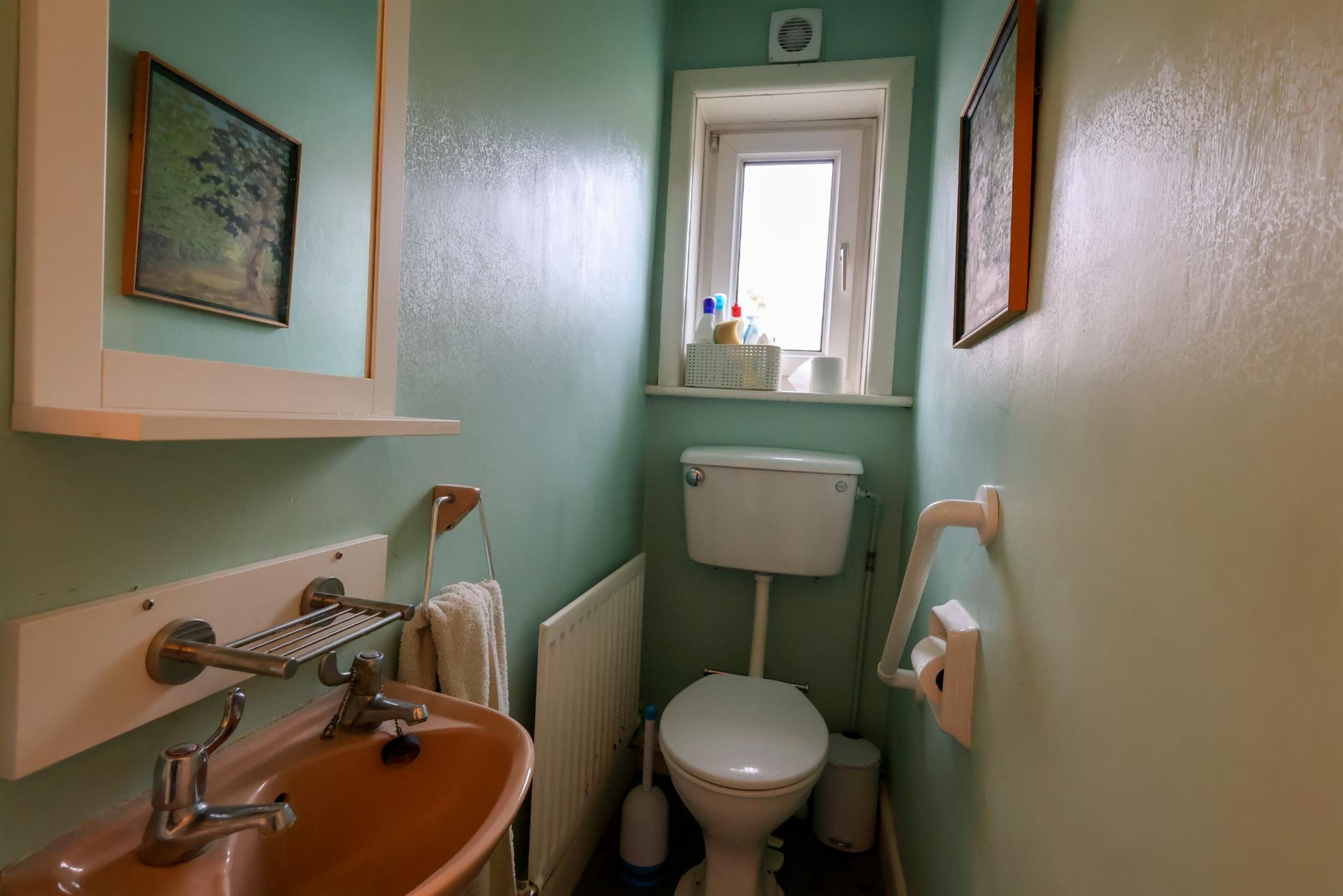 Double glazed window to side elevation, low level toilet, had wash basin, radiator, textured finish to ceiling and wall inserted ventilation.