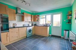 Textured and coved ceiling, UPVC double glazed window and UPVC double glazed obscured door to rear opening onto rear garden, storage cupboard housing wall-mounted boiler, range of wall, base and drawer units with work surface over, stainless steel sink and drainer inset, tiling to principal areas, built-in oven, electric hob with extractor over, space for fridge/freezer, dishwasher, washing machine and tumble dryer, radiator, tiled floor.