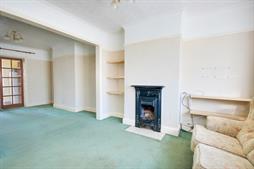 Coved and textured ceiling with picture rail, UPVC double glazed half bay window to front, cast iron fireplace, radiator, opening to: