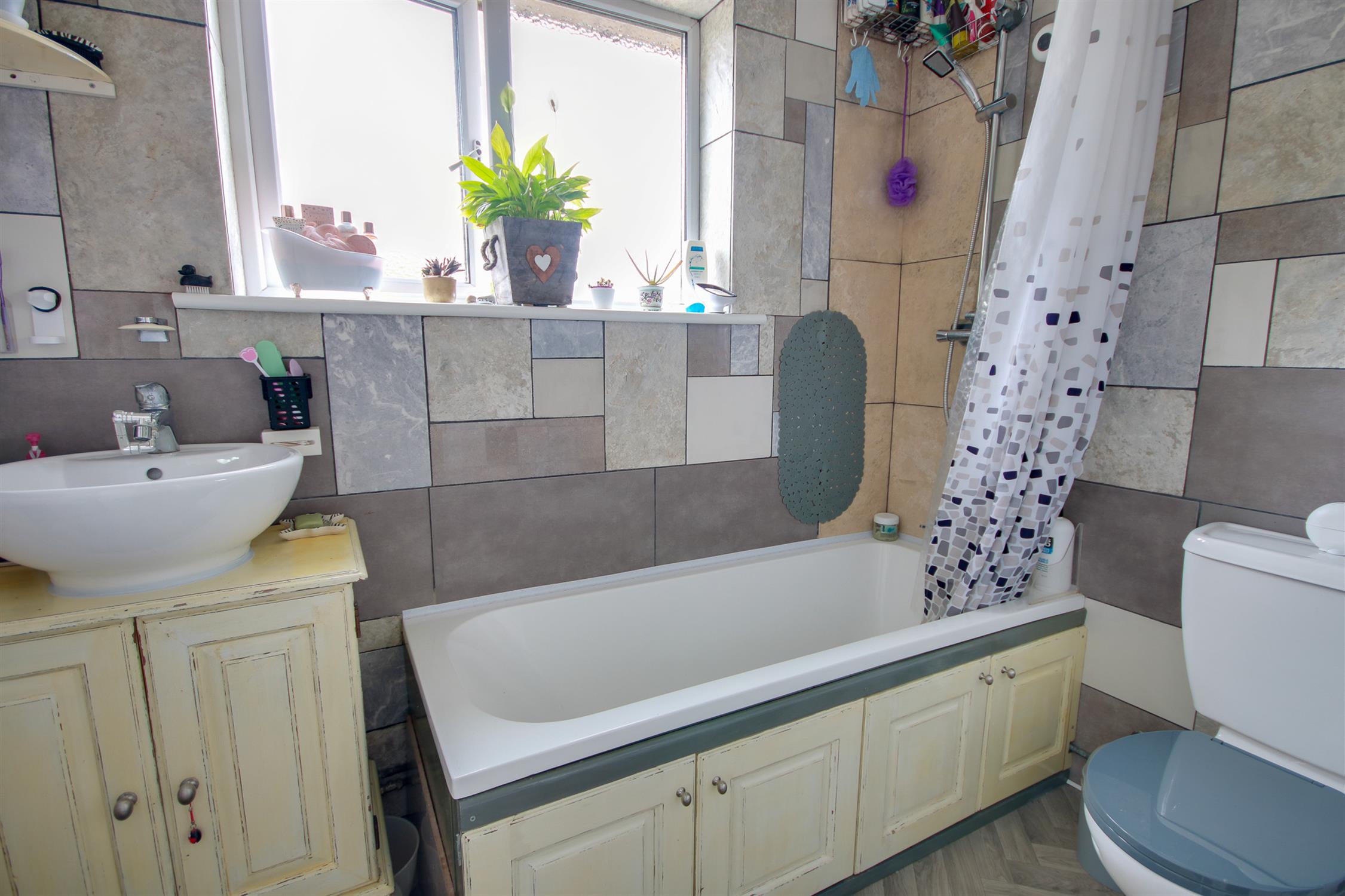 Panelled ceiling, UPVC double glazed obscured window to rear, WC, wash hand basin and bath with rainfall-style shower over, fully tiled walls, radiator.