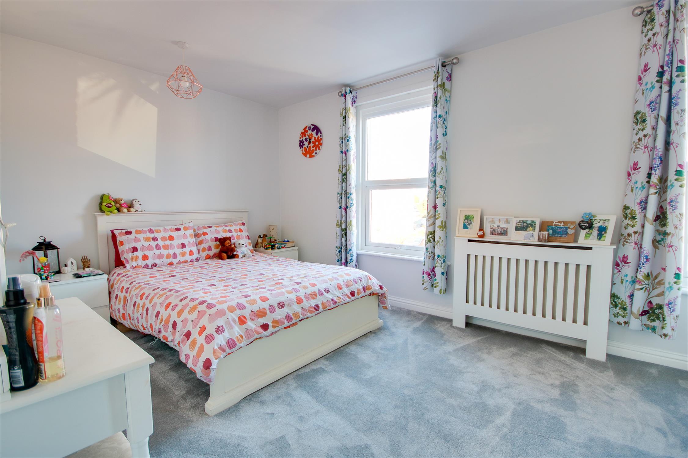 Smooth ceiling, double glazed window to side, radiator.