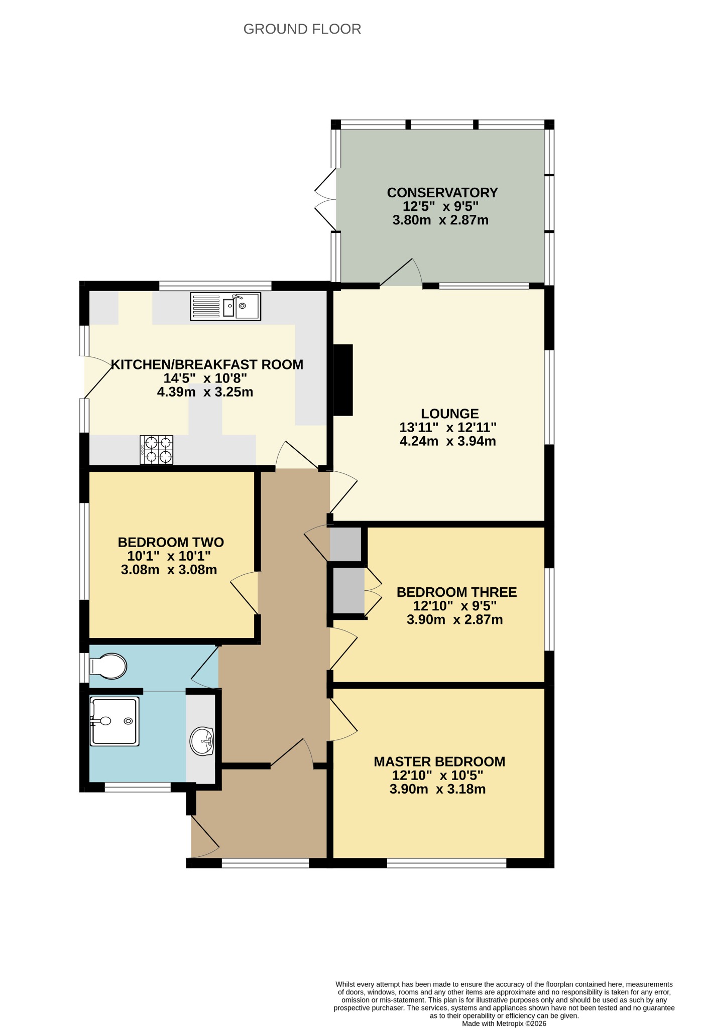 13' 11" (4.24m) x 12' 11" (3.94m)::