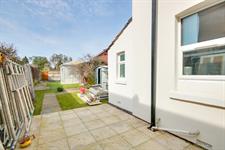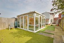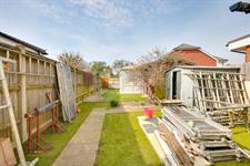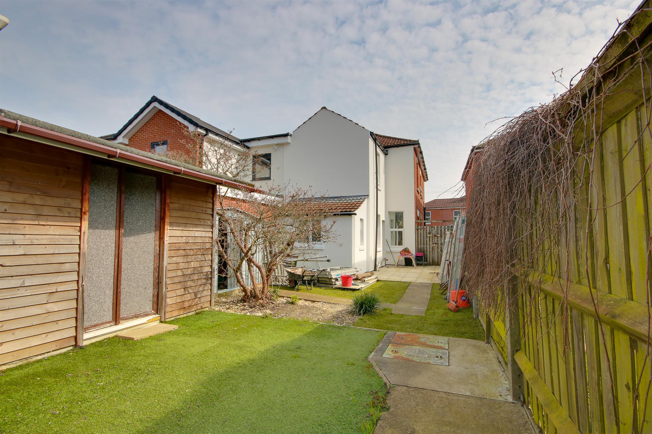 Fence enclosed rear garden, artificial lawn, two storage sheds, side access.
