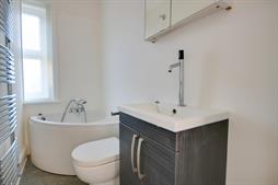 Textured and coved ceiling, double glazed window to front, picture rail, corner bath, WC, wash hand basin, ladder towel rail.