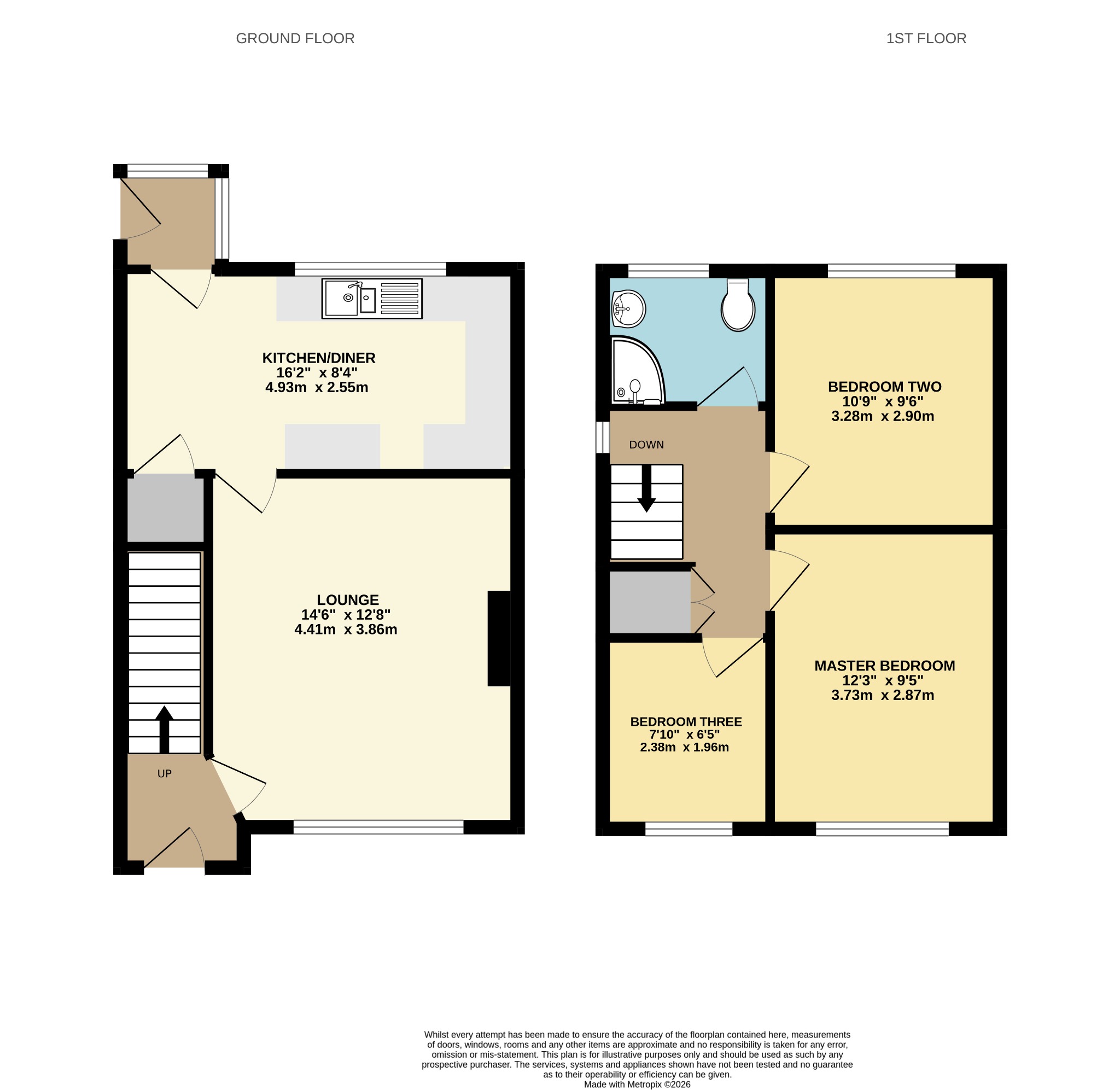 8' 4" (2.54m) x 16' 2" (4.93m)::