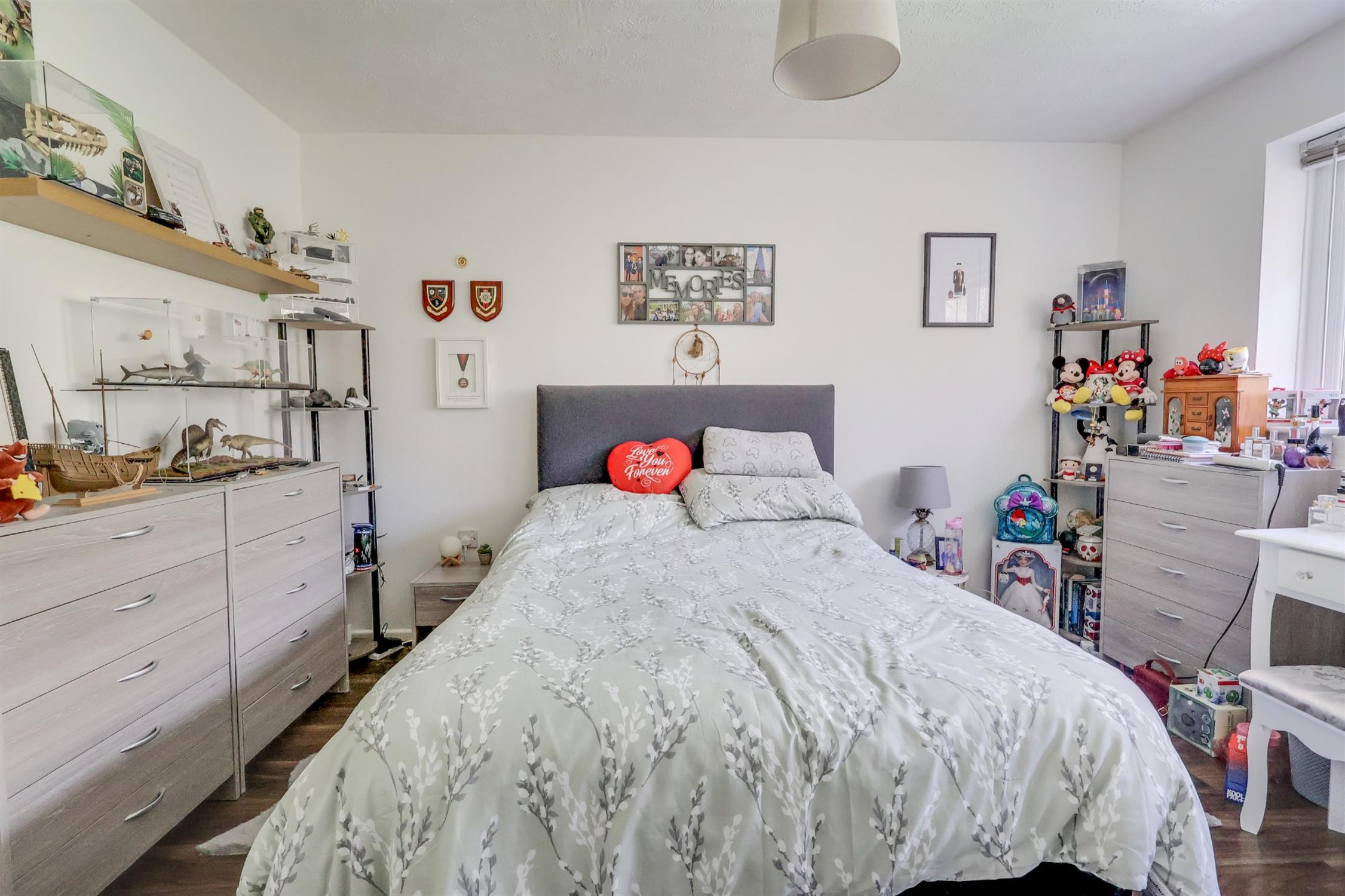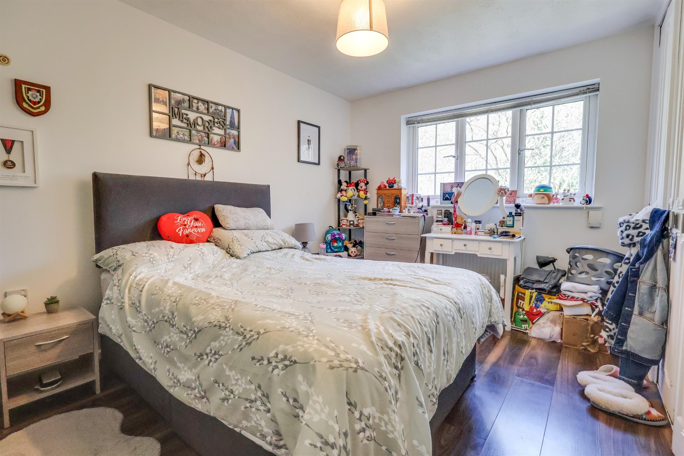 Textured finish to ceiling with hatch providing access into loft space, double glazed window to front elevation overlooking woodlands, built in wardrobes, laminate flooring, radiator.