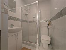 BATHROOM - Three-piece bathroom suite with shower cubicle. Cupboard also houses the washing machine.