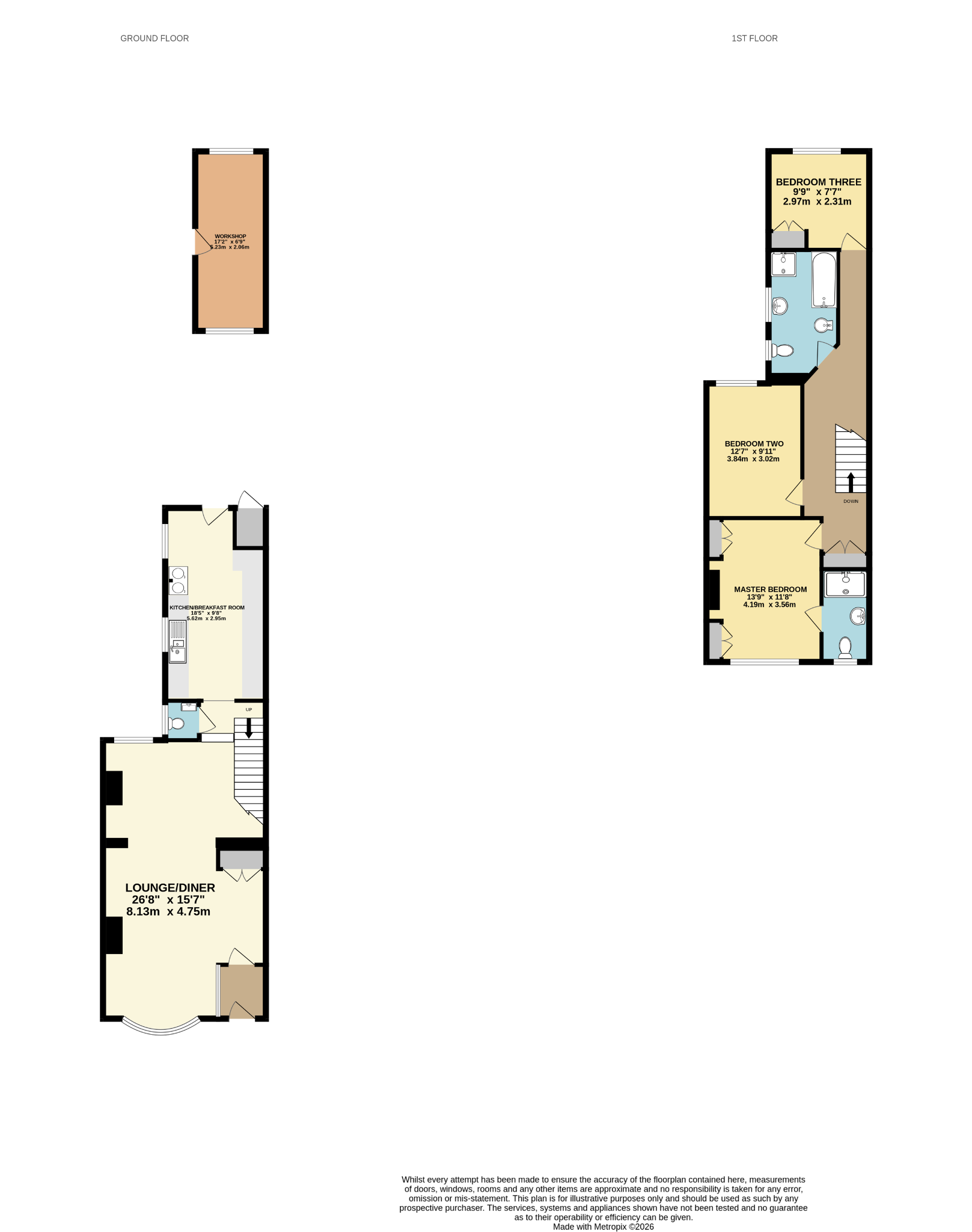 9' 9" (2.97m) x 7' 7" (2.31m):
