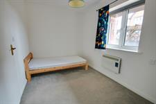 Textured ceiling, double glazed bay window to rear, double glazed door to side leading into communal garden. Door to: