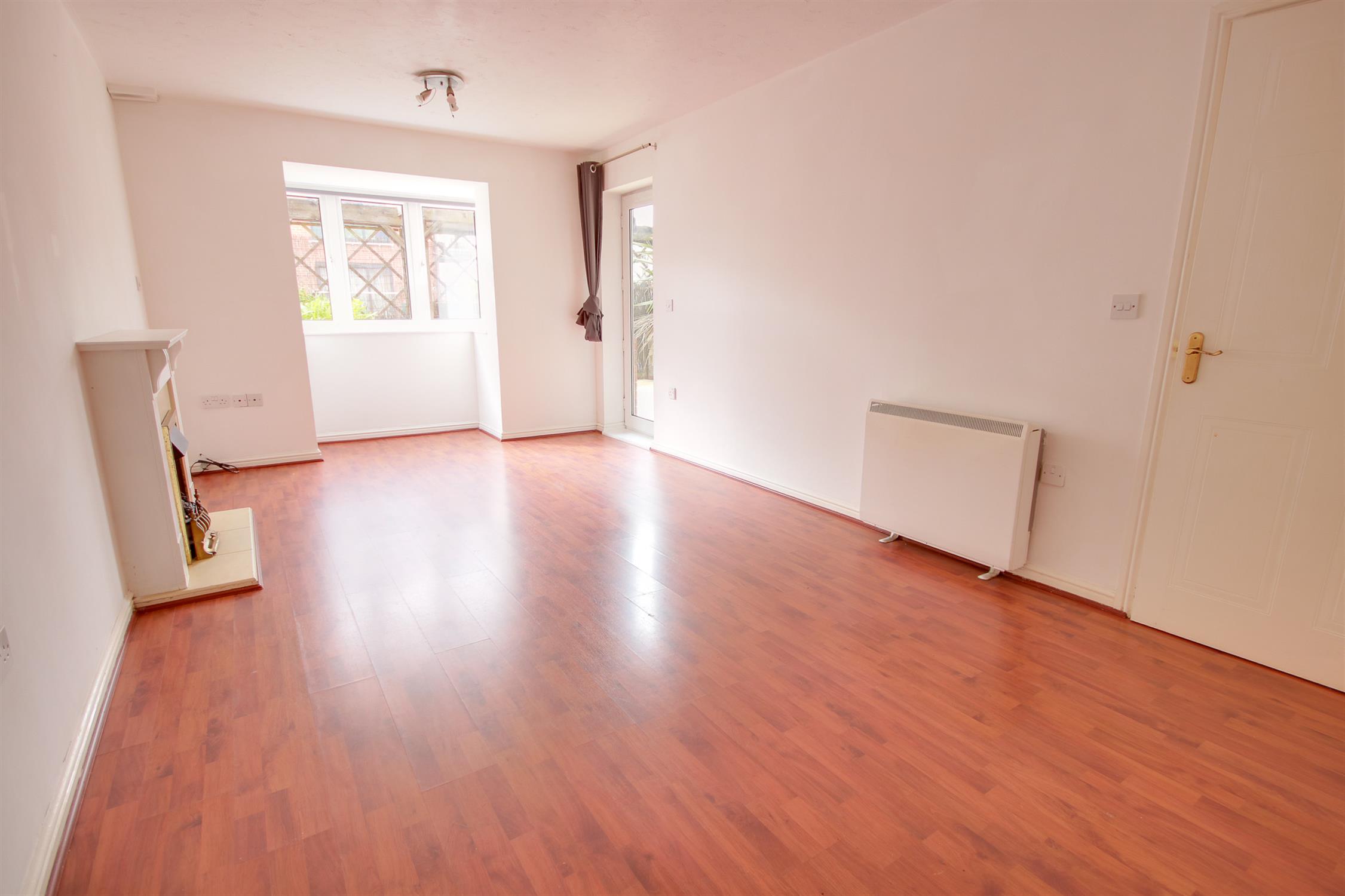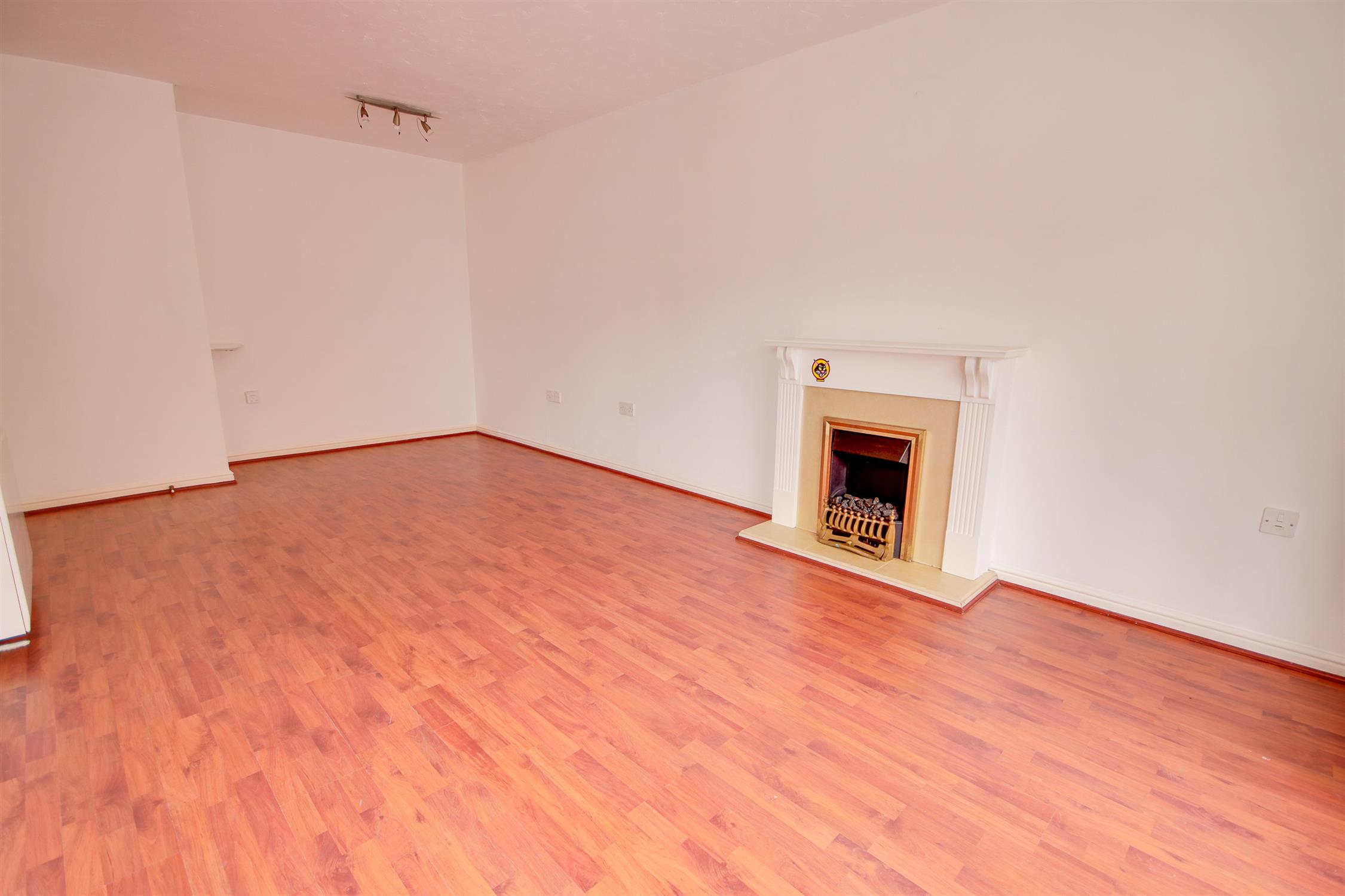 Textured ceiling, double glazed bay window to rear, double glazed door to side leading in to communal garden, electric fire place and surround, storage heater.