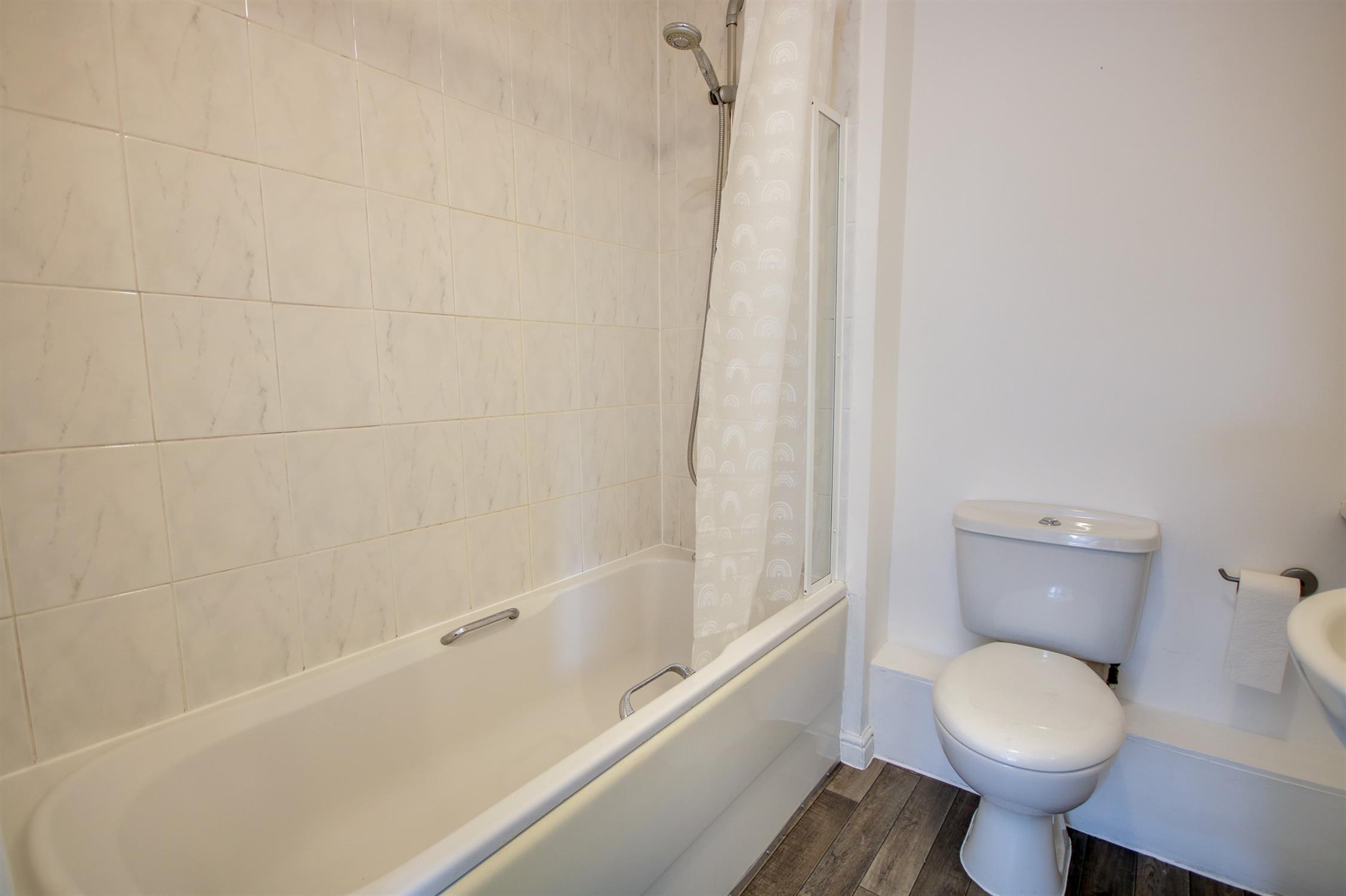Textured ceiling, three piece suite comprising of panel enclosed bath with shower over, wash hand basin, WC, tiling to applicable areas.