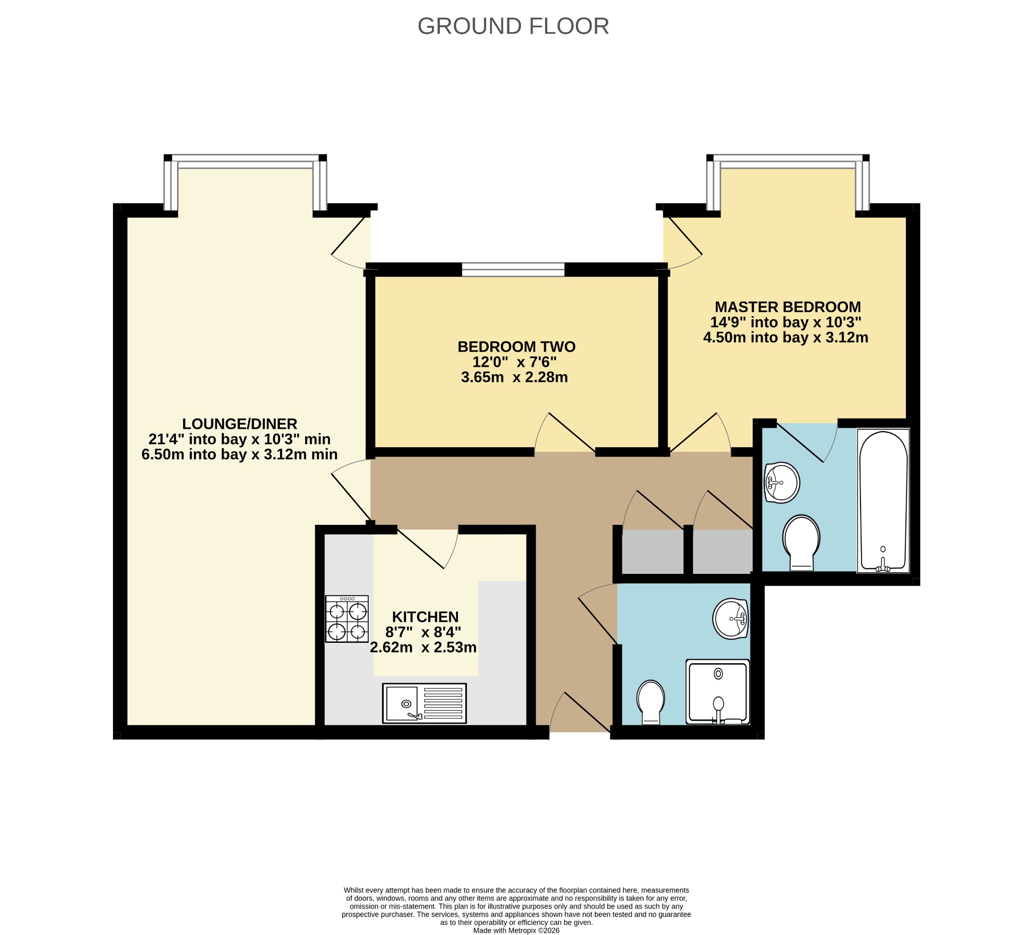 14' 9" (4.50m) into bay x 10' 3" (3.12m)::